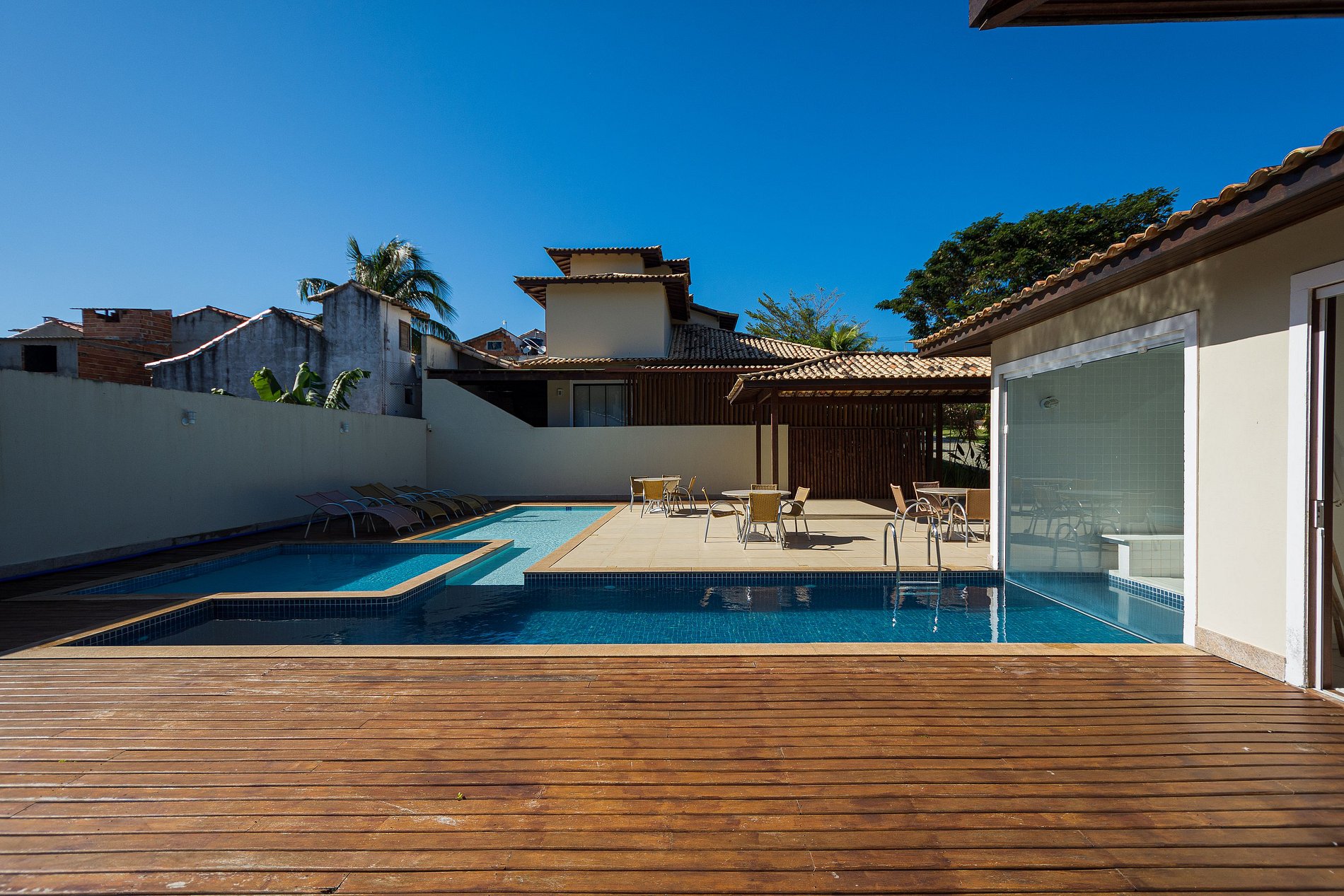 O condomínio possui piscina que fica na frente da casa e uma sauna a vapor. A utilização dos mesmos é liberada mediante o cumprimento das regras do condomínio.