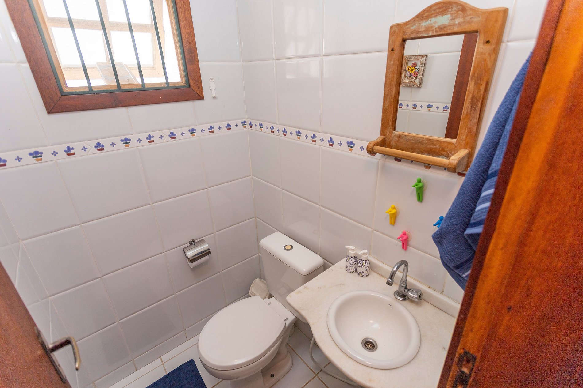 A casa dispõe de 3 quartos, sendo uma suíte externa, além de um banheiro e um lavabo. A sala é equipada com TV smart, proporcionando conforto para momentos de lazer. A cozinha americana é completa, com todos os utensílios necessários para preparar suas refeições. No exterior, você encontrará um espaço perfeito para relaxar, com bancos e redes. A área gourmet com churrasqueira e mesa para 8 pessoas é ideal para confraternizações, criando o ambiente perfeito para aproveitar em família.