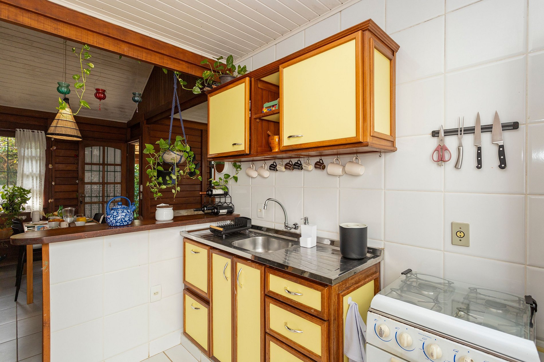 A casa dispõe de 3 quartos, sendo uma suíte externa, além de um banheiro e um lavabo. A sala é equipada com TV smart, proporcionando conforto para momentos de lazer. A cozinha americana é completa, com todos os utensílios necessários para preparar suas refeições. No exterior, você encontrará um espaço perfeito para relaxar, com bancos e redes. A área gourmet com churrasqueira e mesa para 8 pessoas é ideal para confraternizações, criando o ambiente perfeito para aproveitar em família.