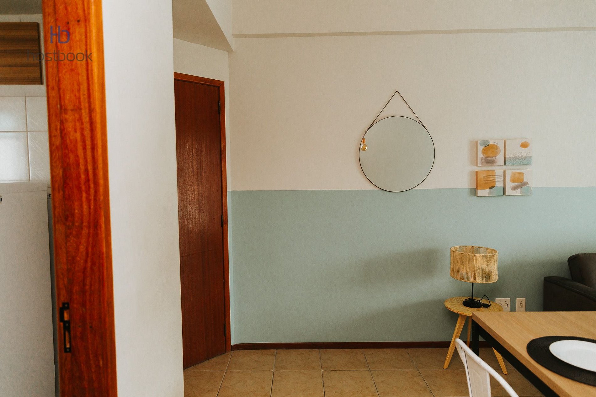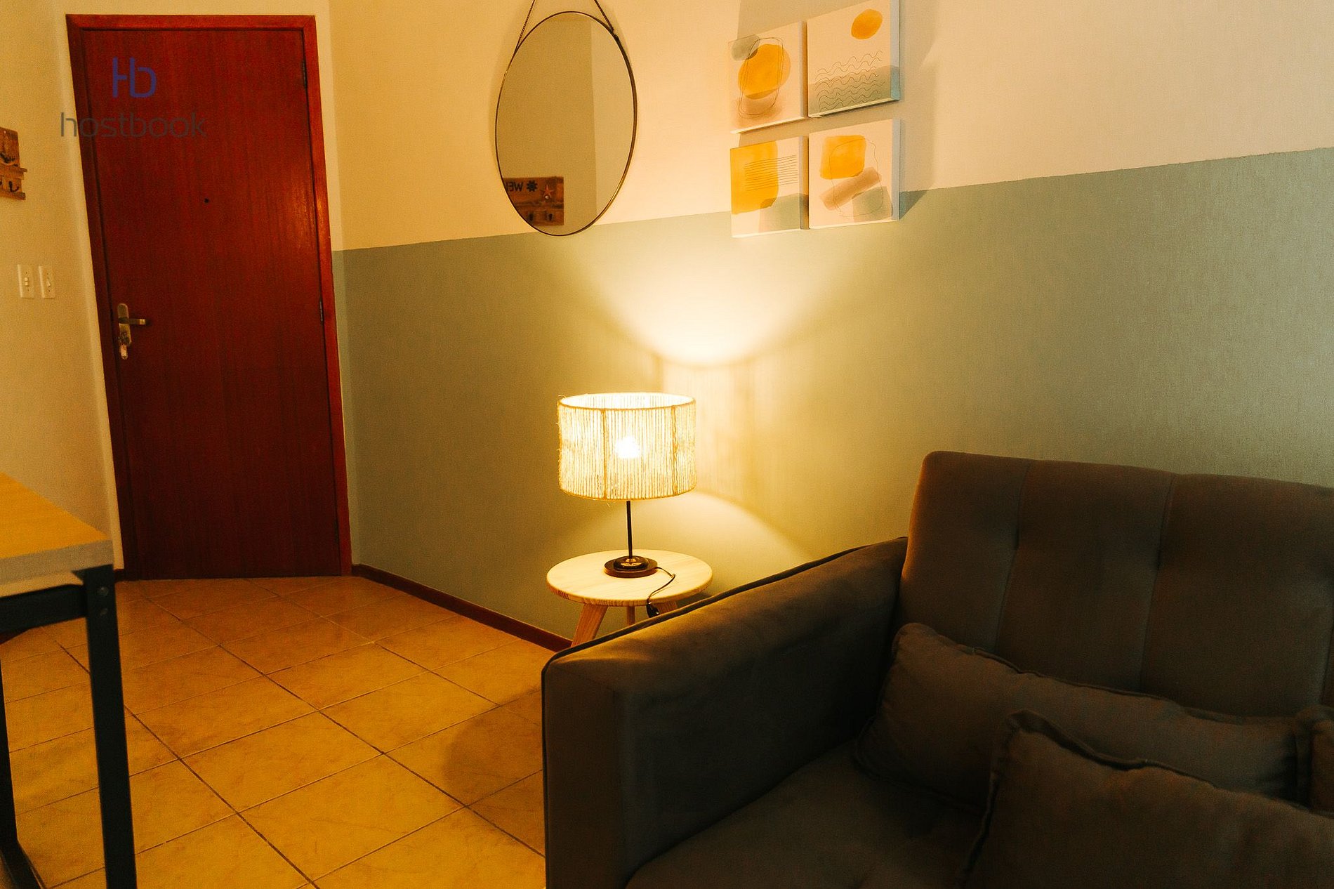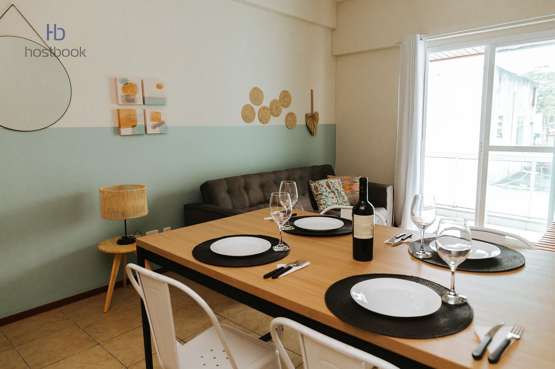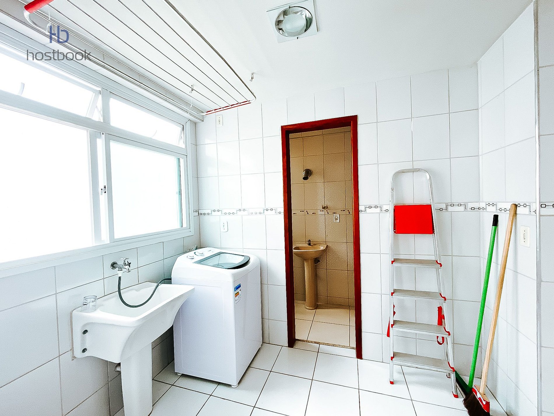 O apartamento possui 2 quartos com ar-condicionado, sendo uma suíte, 2 banheiros, sala aconchegante com TV smart e mesa para jantar. Cozinha completa com todos os tipos de utensílios e panelas. Área de serviço com máquina de lavar. O ar-condicionado da sala não está disponível para uso.