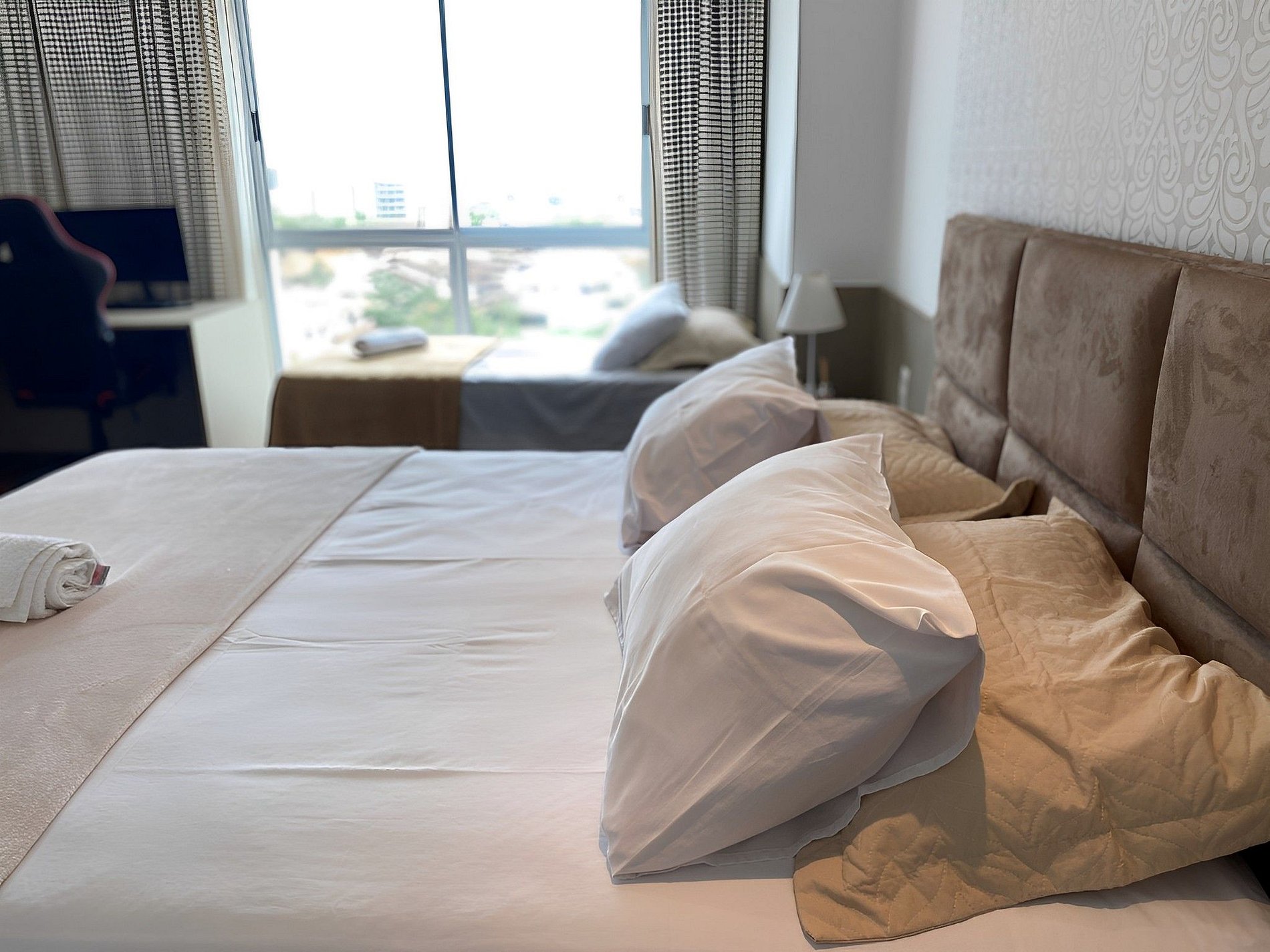 Lindo apartamento de alto padrão. Espaço confortável para trabalhar e descansar em um dos melhores lofts da cidade e uma vista deslumbrante do mar. O hóspede terá acesso a todos os serviços oferecidos pelo condomínio, como piscina, sauna, academia e camareira. O café-da-manhã e lavanderia são terceirizados e cobrados a parte pelo condomínio. O ar-condicionado é central e atende todo o apartamento.