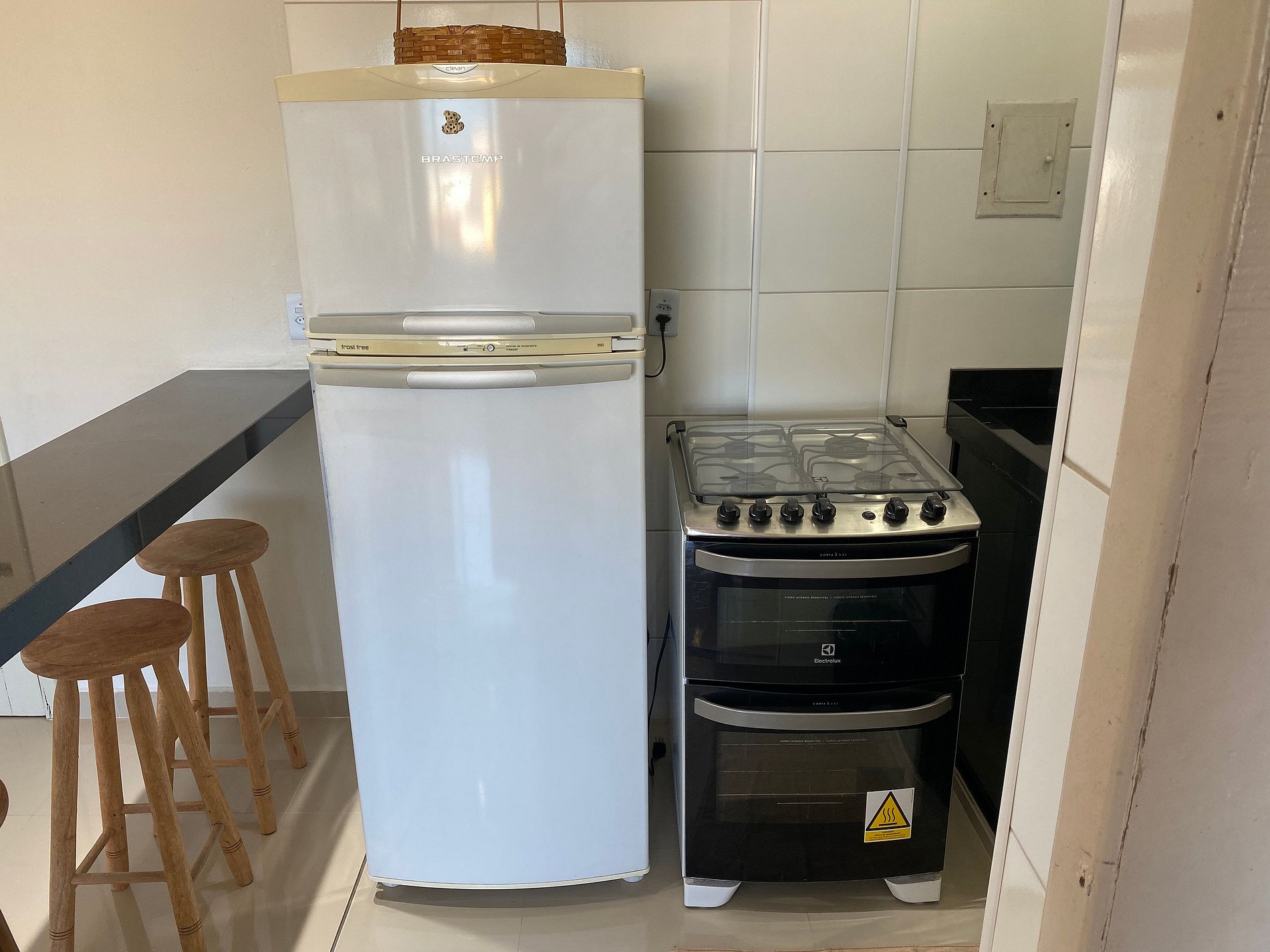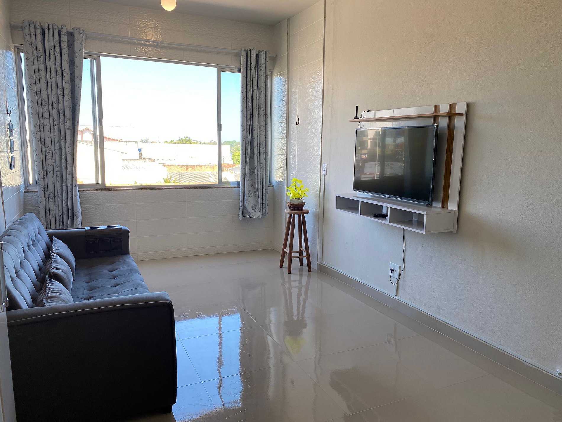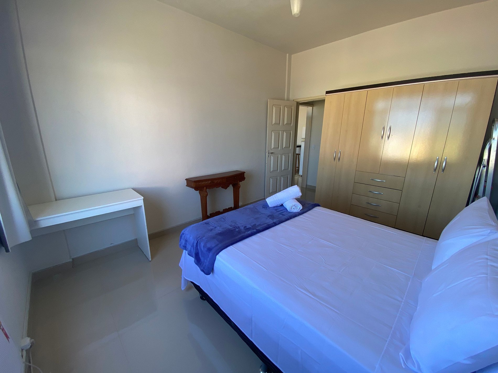 O apartamento possui uma sala ampla com TV smart, um sofá-cama que acomoda até 2 pessoas e ventilador de teto. O quarto possui uma cama confortável, ar-condicionado, ventilador de teto e uma janela com vista para o mar. Cozinha completa com utensílios para cozinhar, cafeteira, liquidificador entre outros itens. Fornecemos roupa de cama e banho para todos os hóspedes.