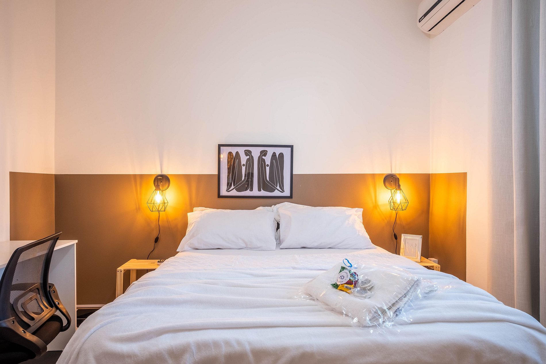 - O apartamento possui uma cama e 1 colchão de casal.