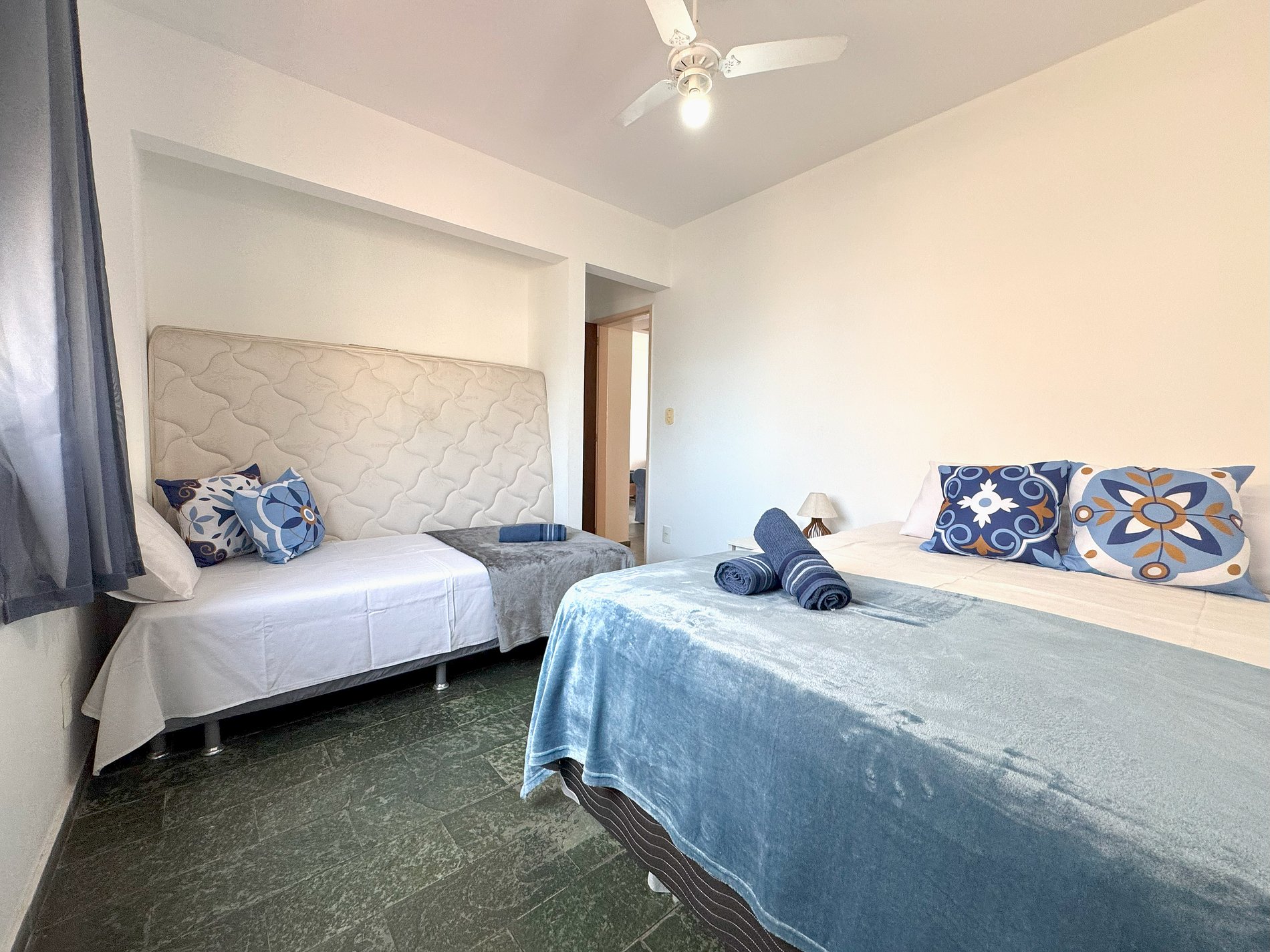 O apartamento possui 1 suite com ar condicionado e um quarto com ventilador, 1 banheiro, sala aconchegante com TV smart. Cozinha completa com todos os tipos de utensílios e panelas.