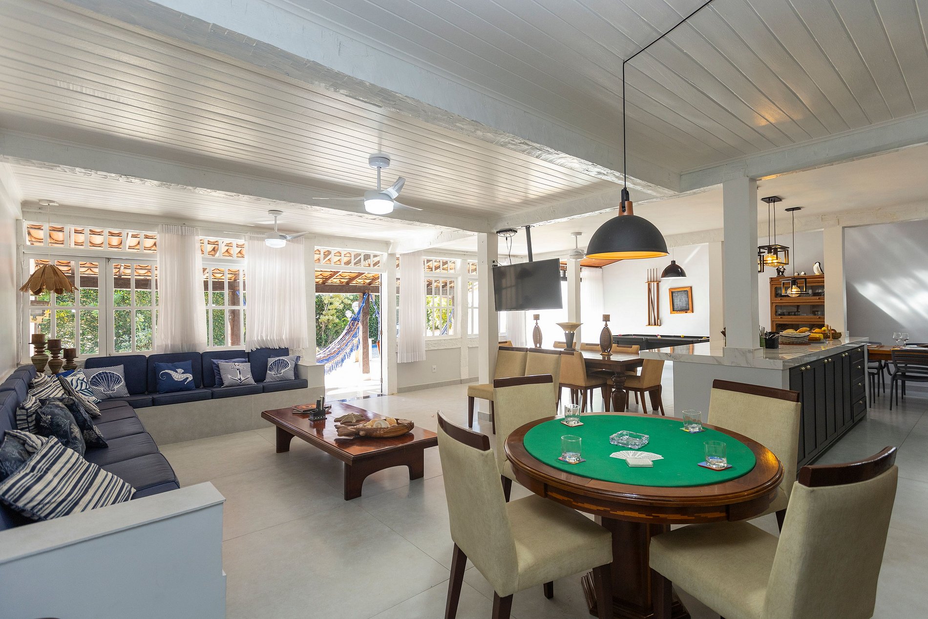 Ideal para famílias, nossa casa em Búzios está a apenas 5 minutos a pé do canto direito da Praia de Geribá. São 5 quartos aconchegantes, sala ampla com sinuca e mesa de jantar para todos se reunirem. No condomínio fechado, a diversão é garantida com piscina, totó, ping pong e quadra de futebol. Um espaço perfeito para criar memórias inesquecíveis em família!