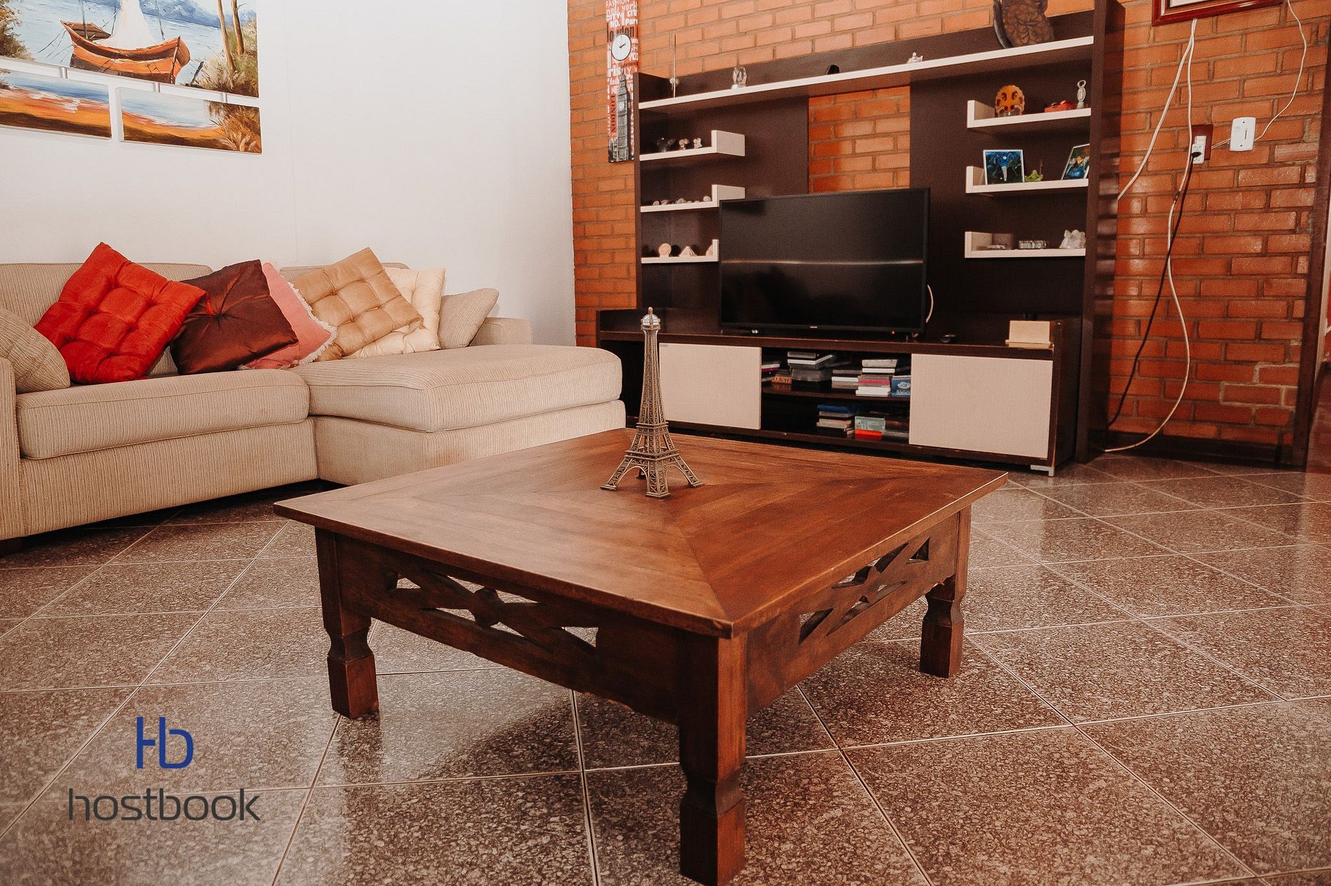 A sala possui TV smart e canais abertos.