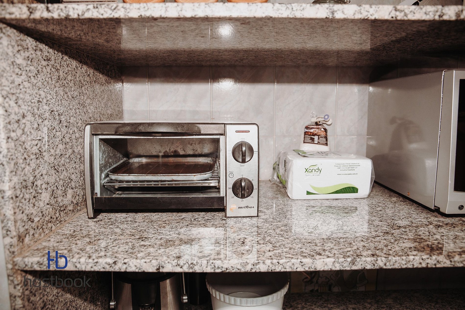 A cozinha é bem completa com vários utensílios para cozinhar, airfryer, forno elétrico, micro-ondas, torradeira e etc.