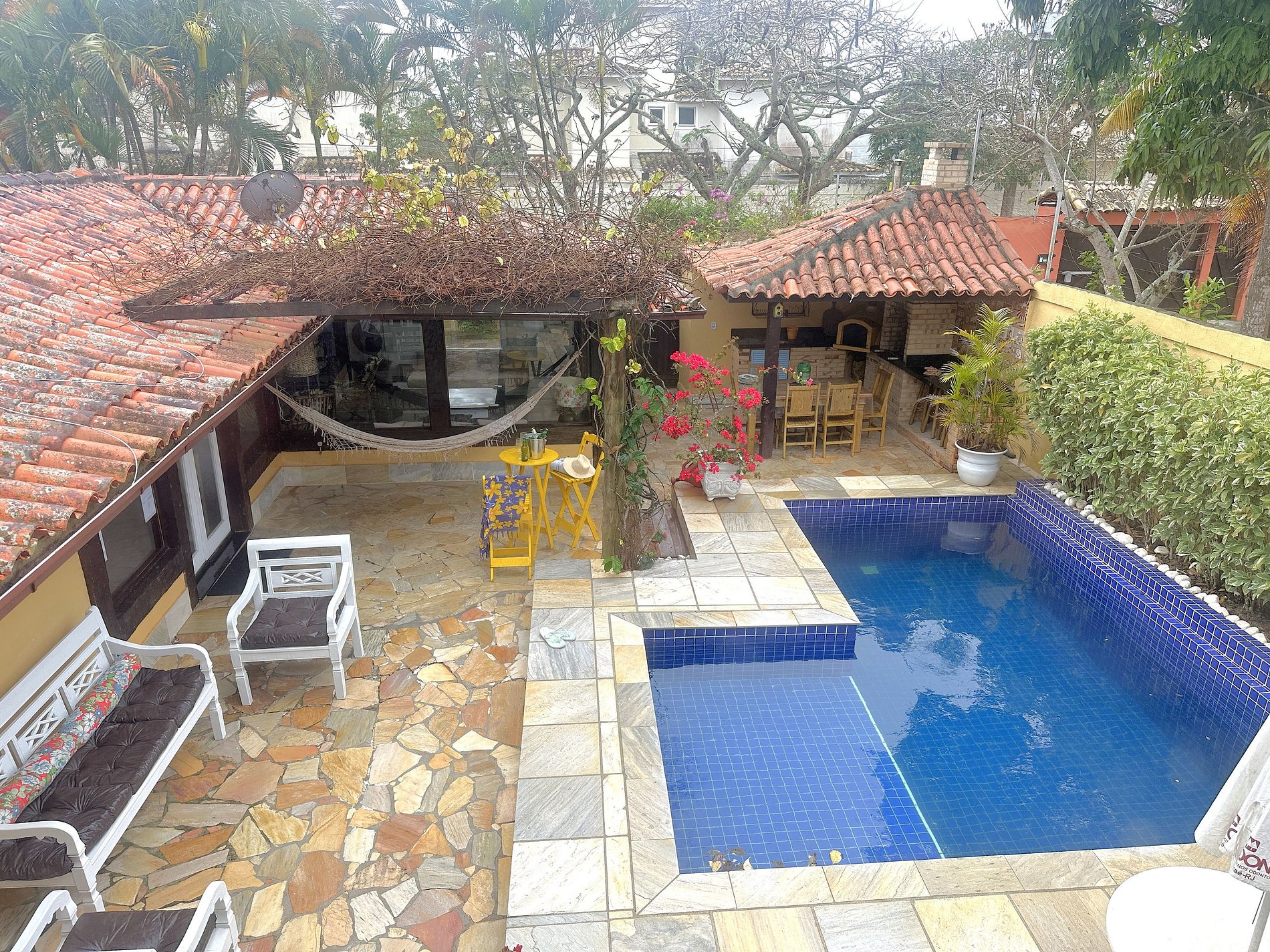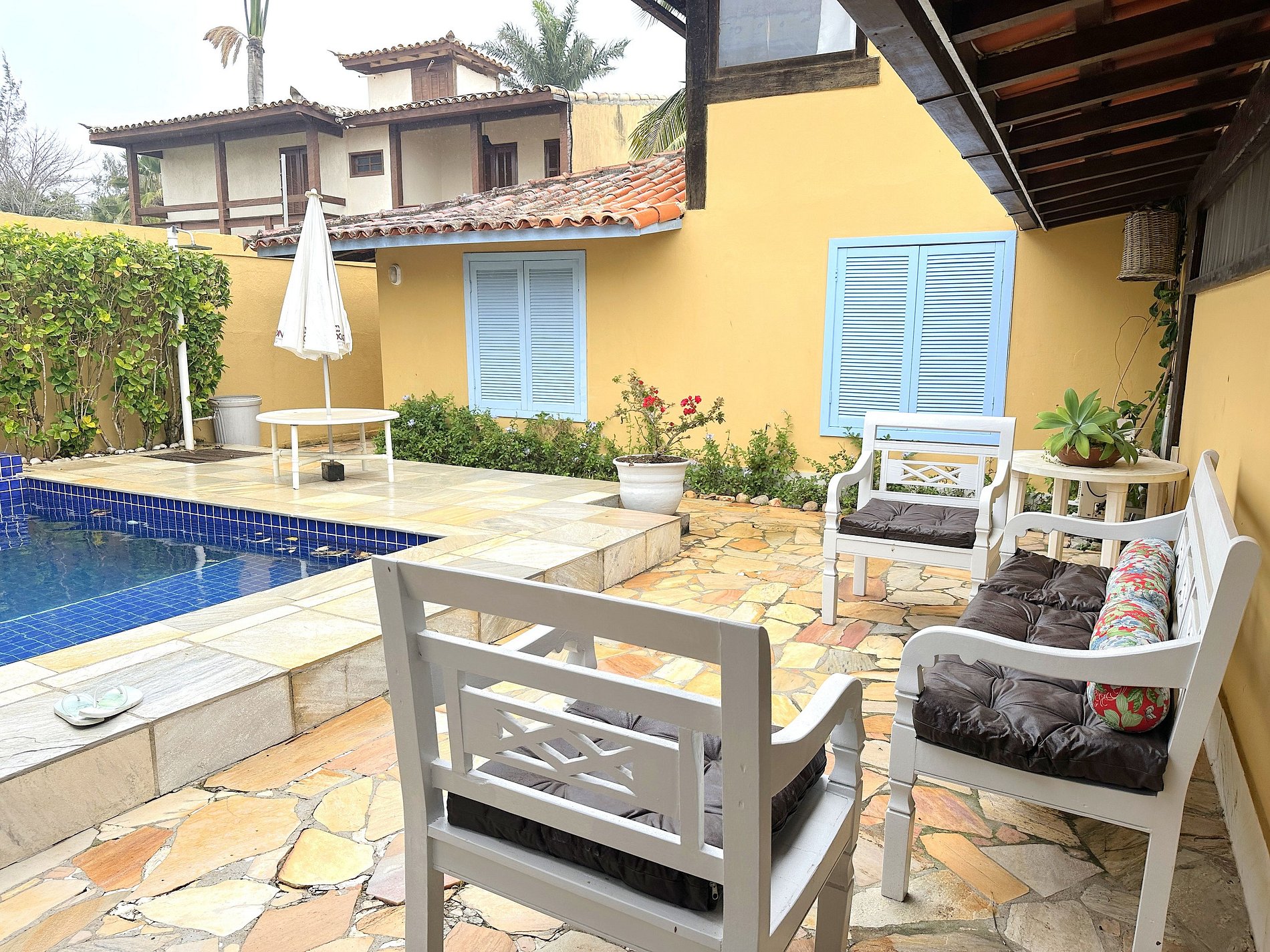 - Algumas cadeiras e almofadas ficam guardadas na sala para não ficar no tempo. Caso queiram usar por favor guardem novamente depois.