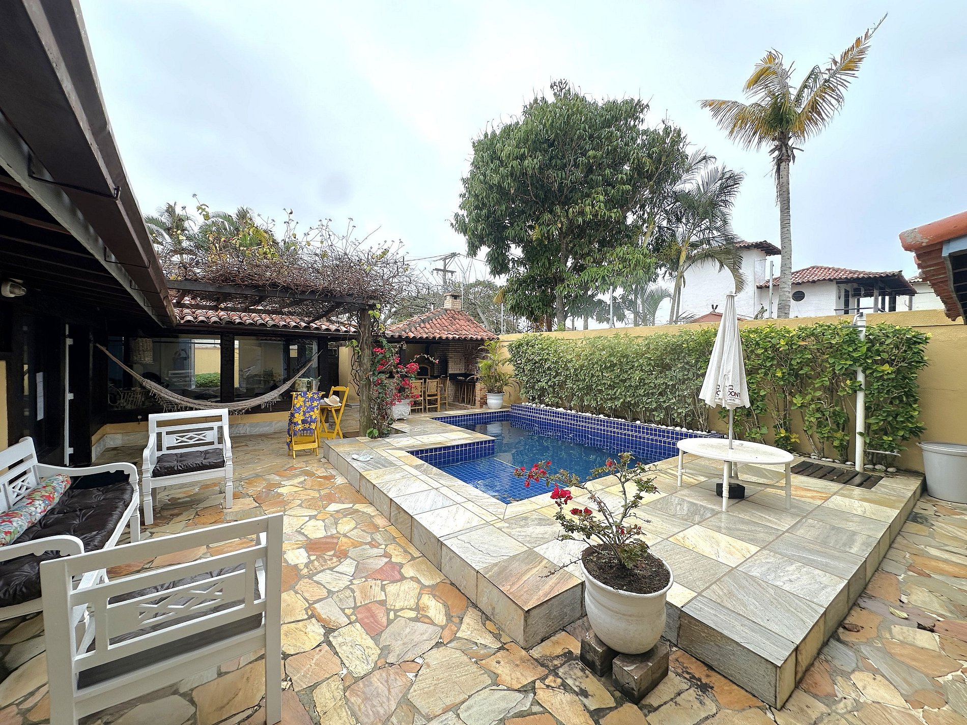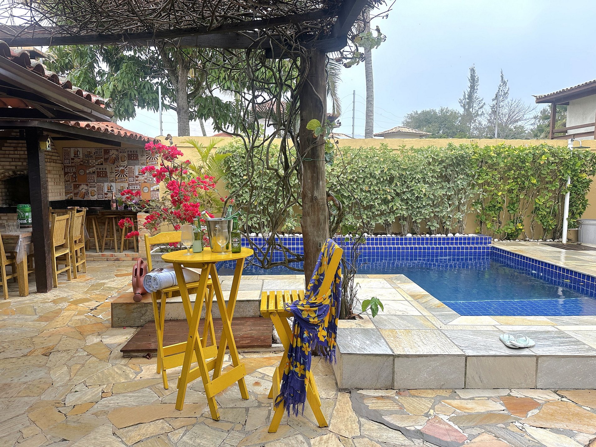- Há um jardineiro que acessa a área externa e a piscina para limpeza 2 vezes na semana. Ele tem as chaves do portão. Em dias de chuva o piscineiro não vai.