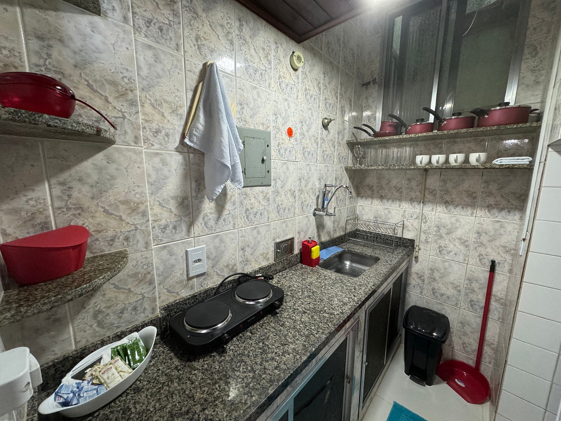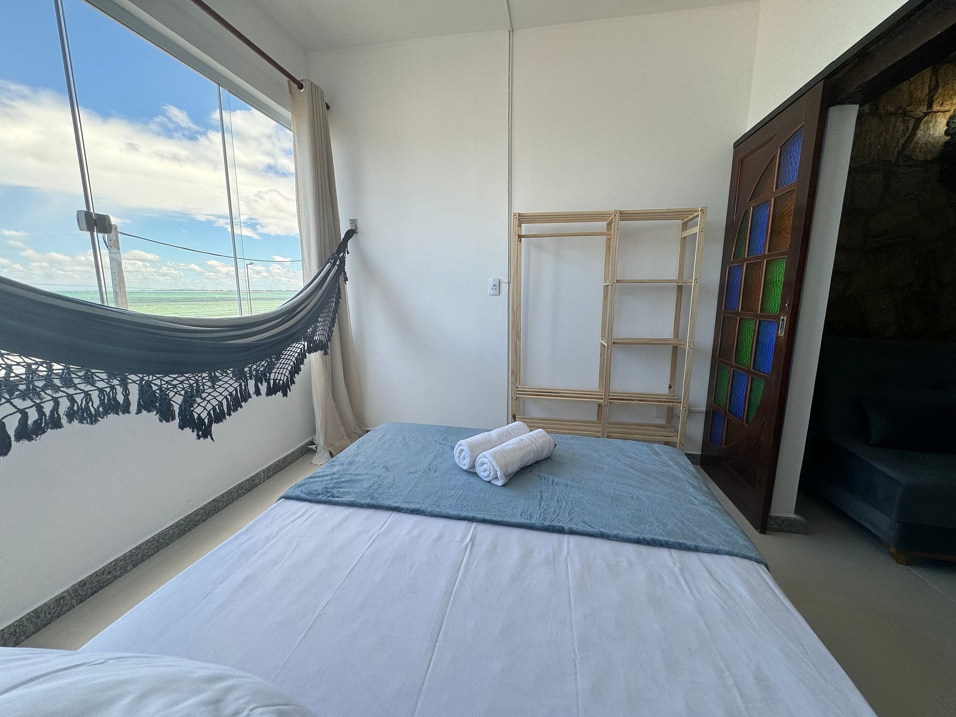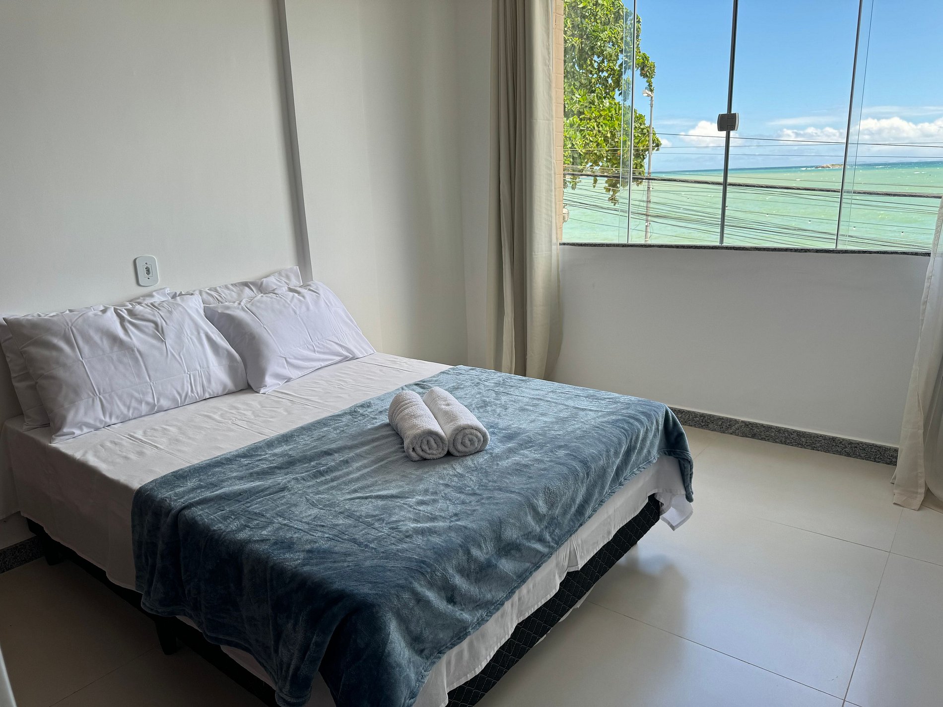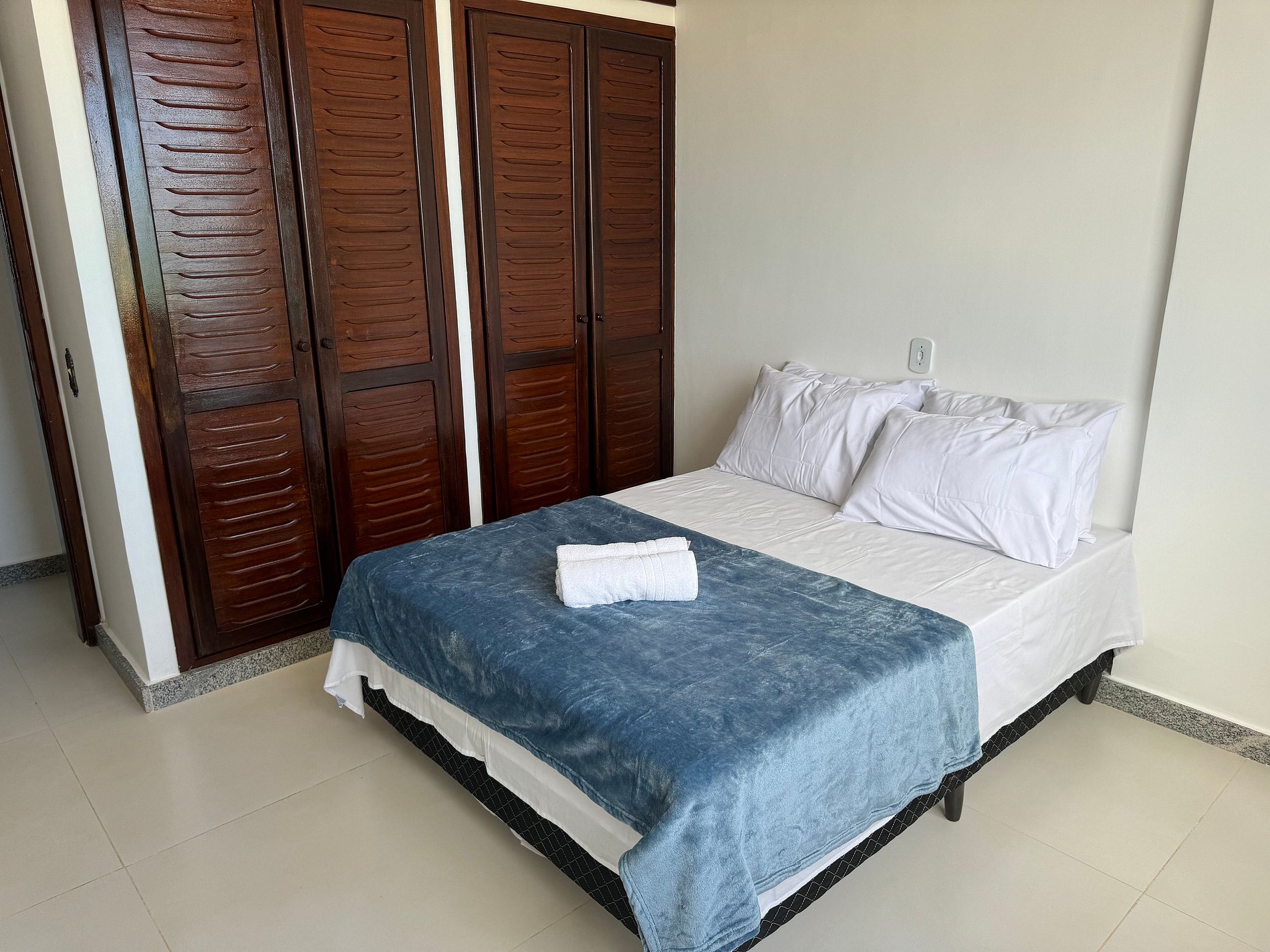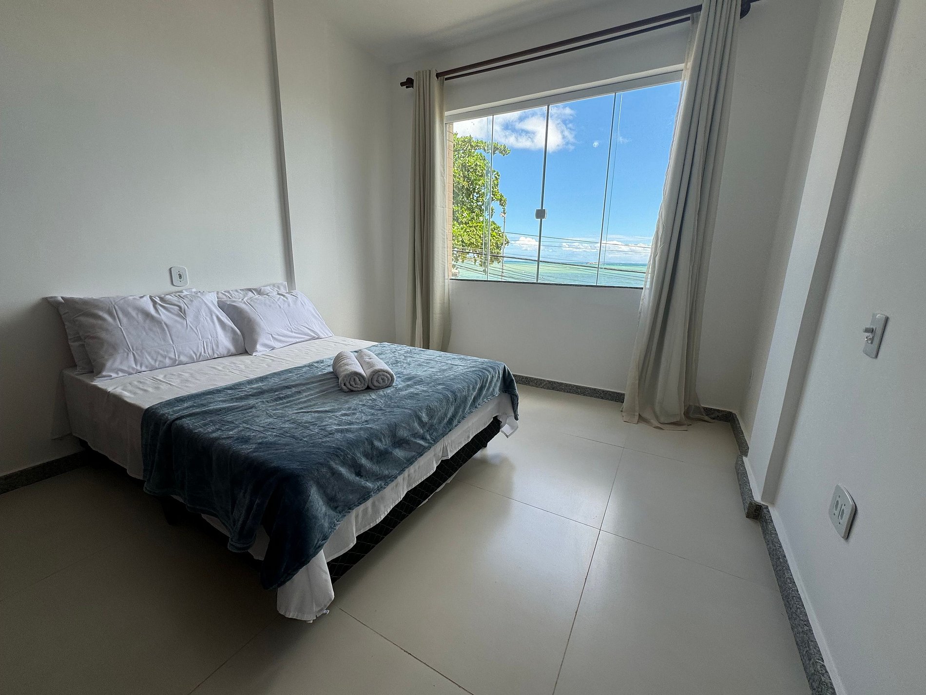 O apartamento possui uma sala ampla com TV smart. O quarto possui uma cama confortável e uma janela com vista para o mar. Cozinha completa com utensílios para cozinhar, cafeteira, liquidificador entre outros itens. Fornecemos roupa de cama e banho para todos os hóspedes.