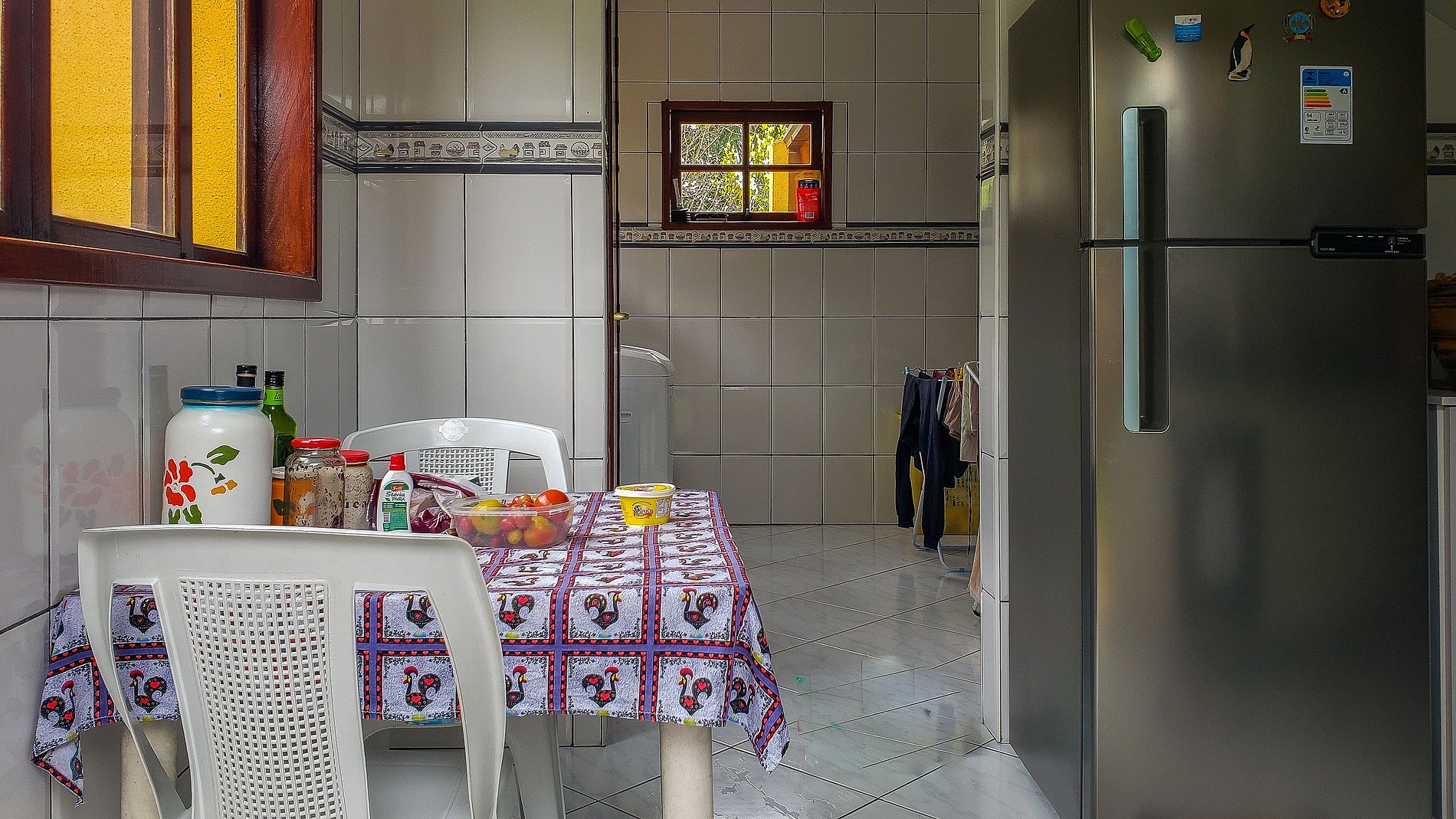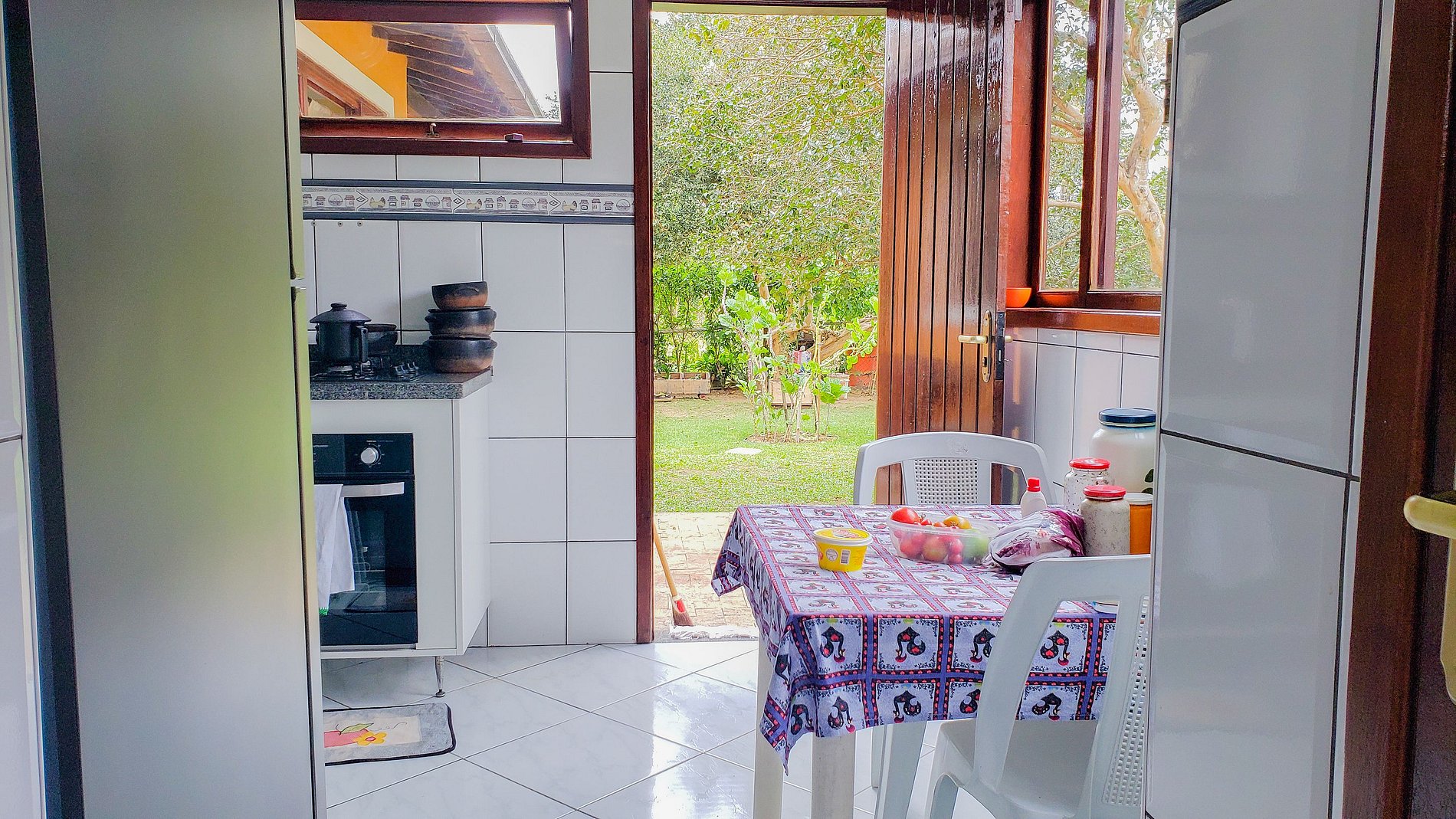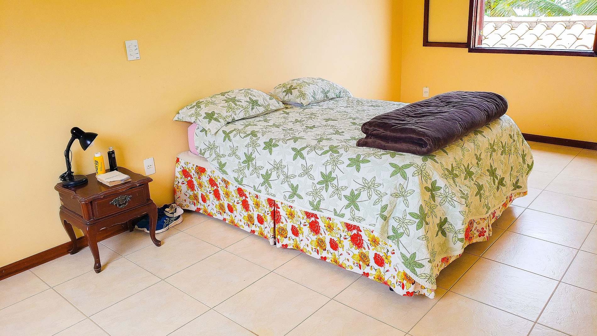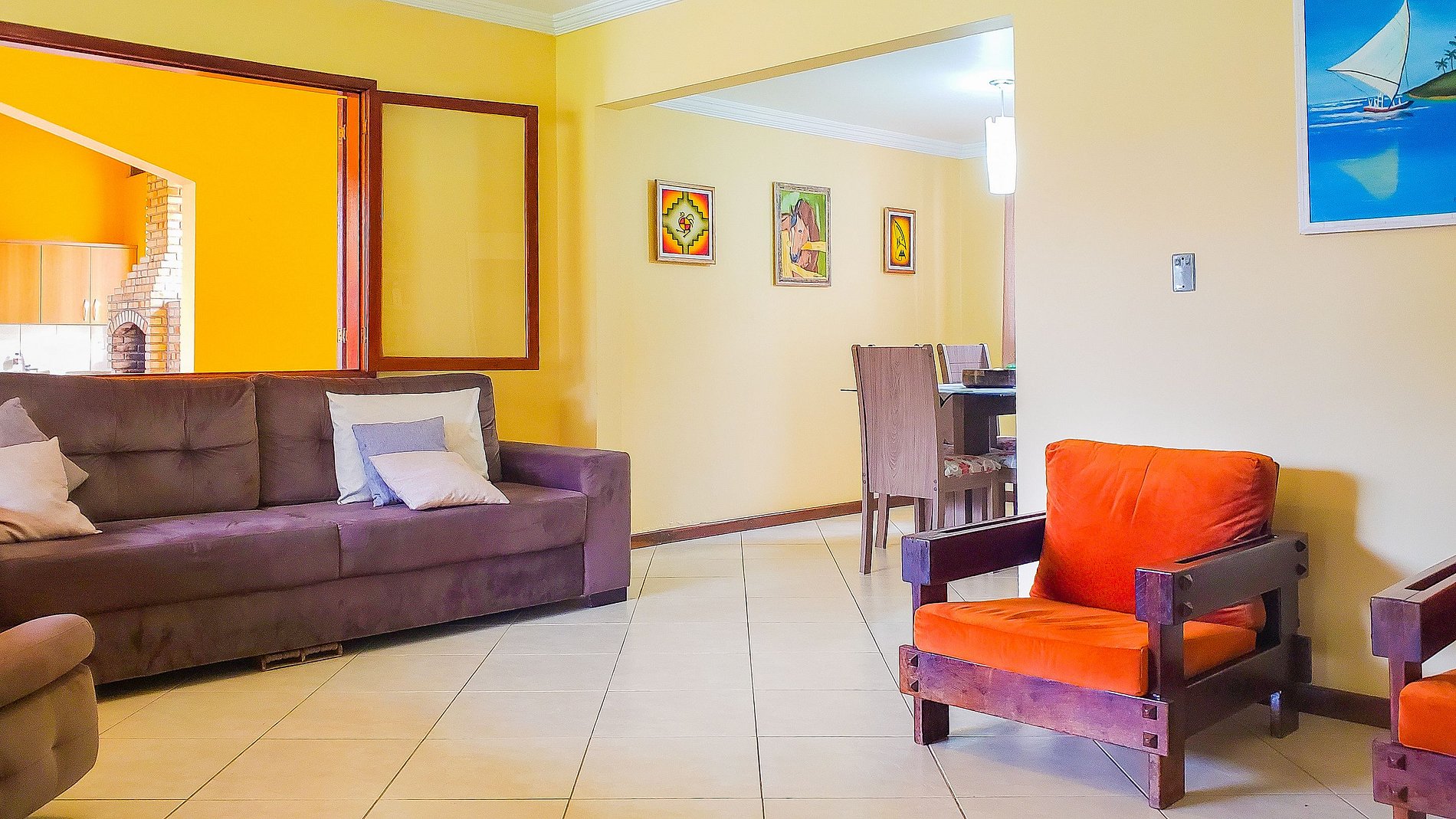 A casa possui 2 suítes e mais 2 quartos e 2 banheiros. Com ambientes amplos e bem cuidados você terá um excelente espaço com churrasqueira, forno e fogão a lenha, redes para descansar, quintal florido e com frutíferas e vista para o mar. Todas as camas são Box e confortáveis e os quartos possuem ventilador de teto e as suítes possuem ar-condicionado. Temos um berço disponível e alguns brinquedos para criança. A garagem abriga até 3 carros, porém parar na rua é totalmente seguro.