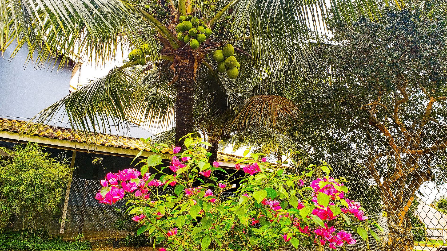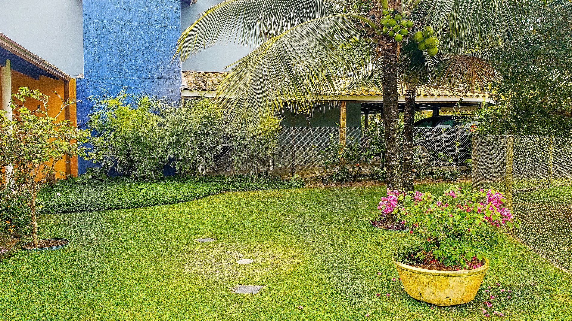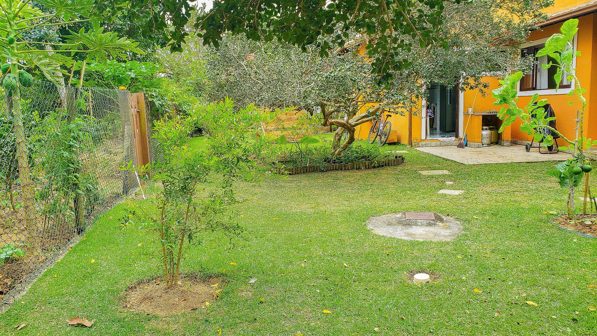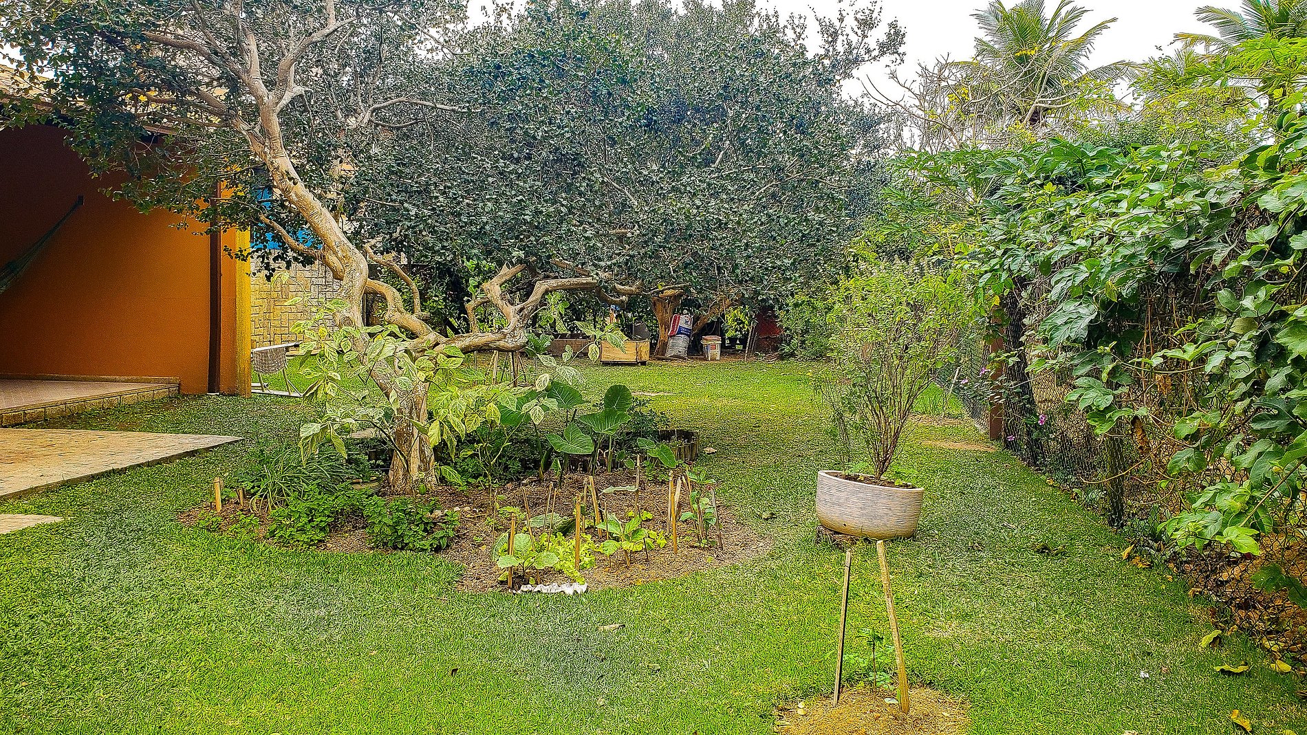 A casa tem um quintal amplo com muitas frutíferas e possui 4 quartos, toda equipada e com área gourmet e forno a lenha, a cerca de 30m da areia da praia. No condomínio você terá acesso à quadra de tênis, salão de jogos, campo de futebol, academia, parquinho, bar e até uma pequena pista de skate.