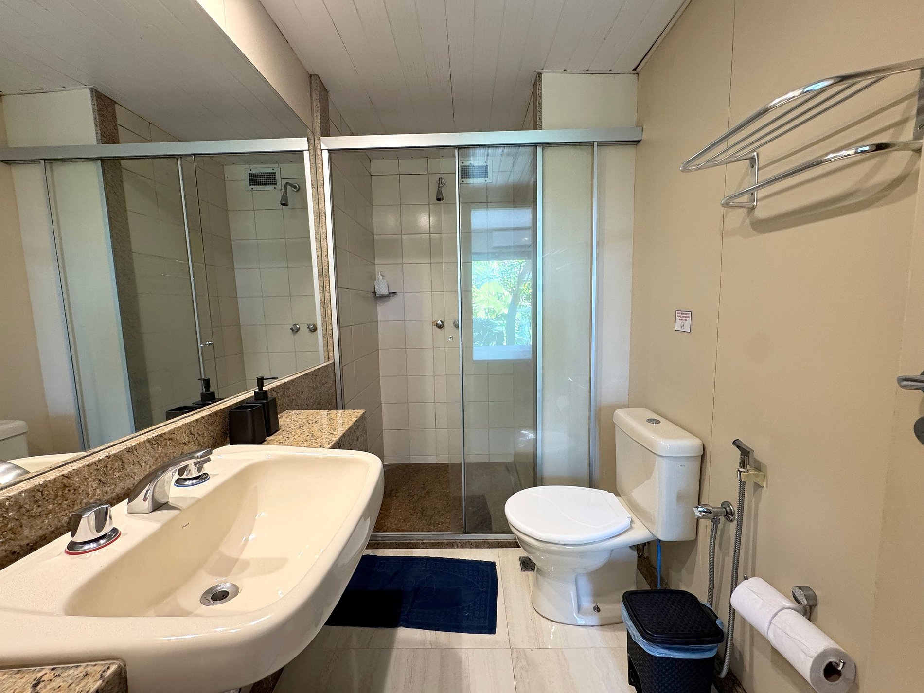 O loft possui uma cama King Size e um sofá que é aberto em duas camas de solteiro armário, banheiro amplo e cozinha completa com todos os itens essenciais para cozinhar. Vista para a Restinga e para o mar, porém há uma grande amendoeira que não permite uma vista plena. No prédio é permitido utilizar a piscina, a sauna e a lavanderia (paga).