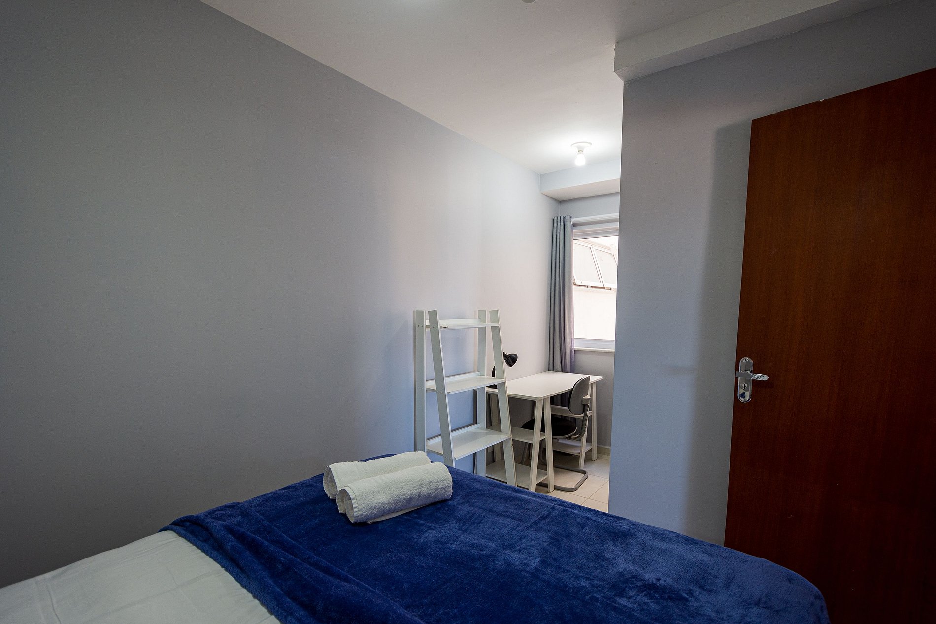O apartamento possui 3 quartos, sendo uma suíte, sala ampla, cozinha, banheiro, escritório e uma varanda. Ele foi preparado e decorado para atender todas as necessidades dos hóspedes. Temos ventiladores de teto em todos os quartos e mais um de chão para a sala, não sendo necessário ar-condicionado, pois no local venta bastante e a proximidade com o mar deixa o clima mais ameno.