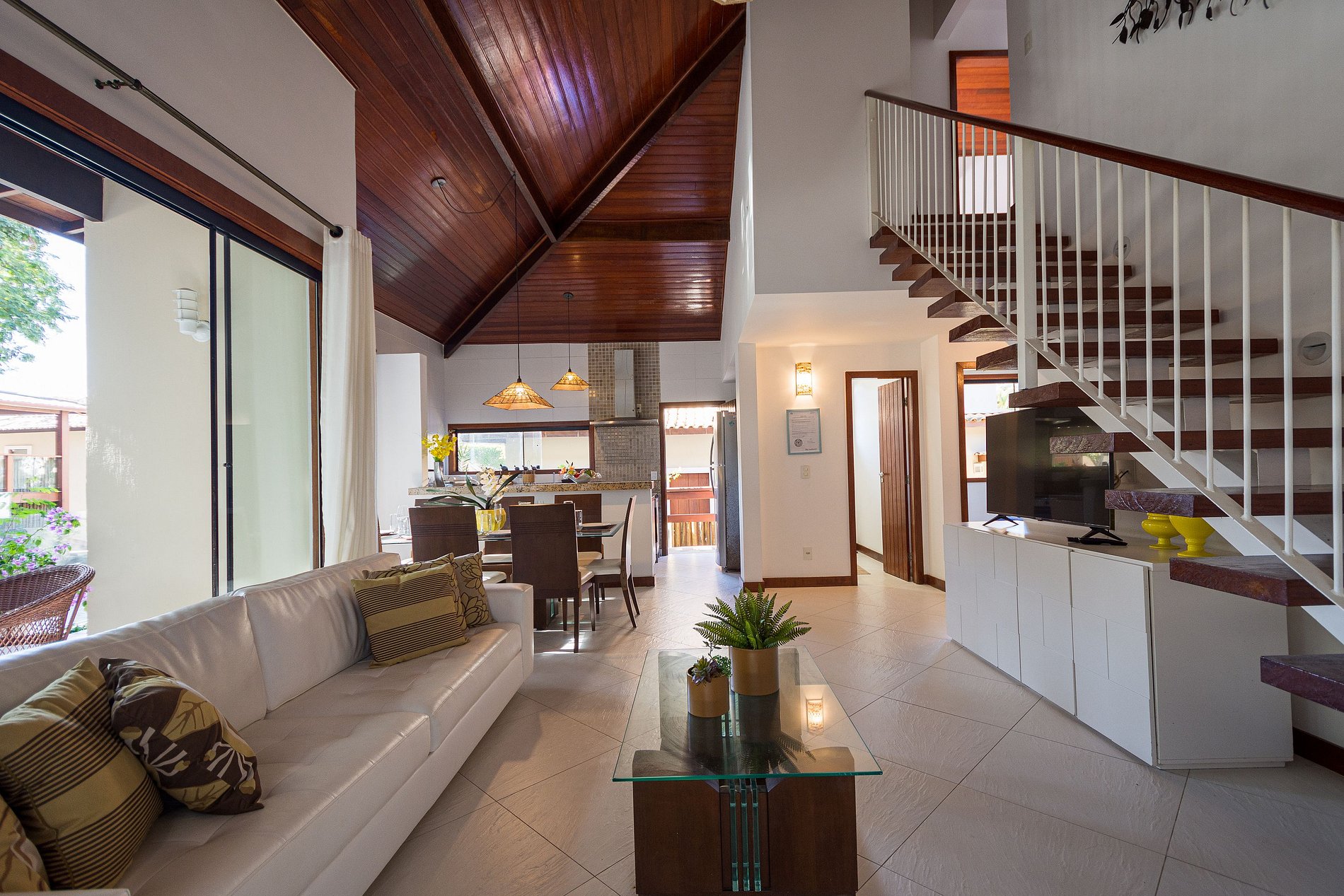 A casa fica em Geribá, em condomínio fechado e com segurança 24h. Ao lado do condomínio temos mercearias e bares onde é possível encontrar qualquer necessidade. As praias de Geribá (Canto esquerdo) e Ferradurinha estão a aproximadamente 8min a pé em uma rua segura e bem movimentada.