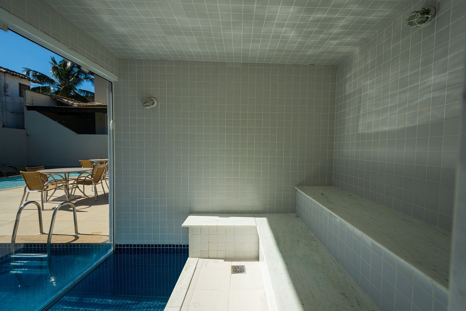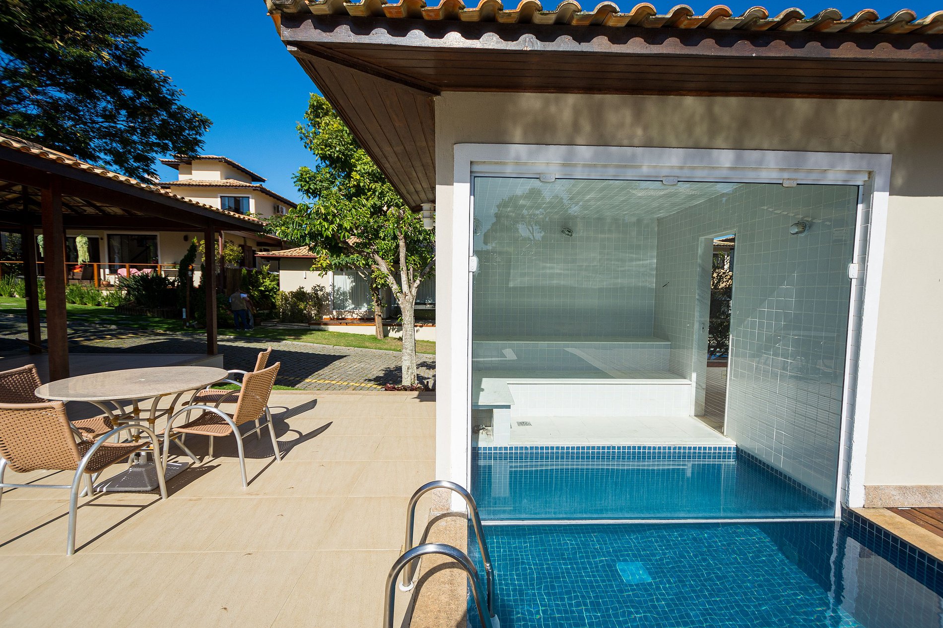 O condomínio possui piscina que fica na frente da casa e uma sauna a vapor. A utilização dos mesmos é liberada mediante o cumprimento das regras do condomínio.
