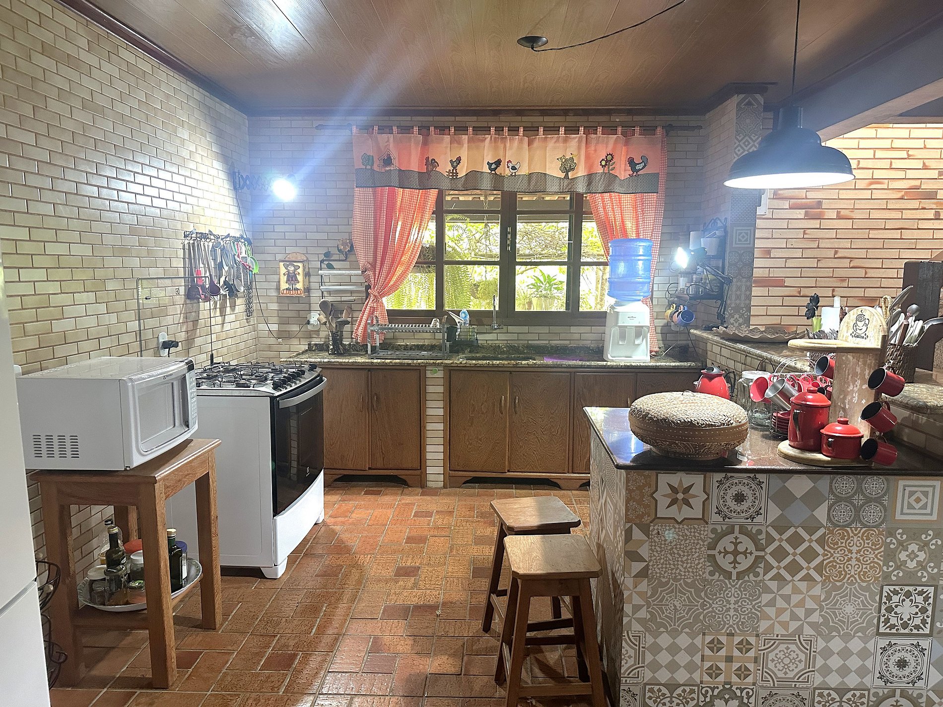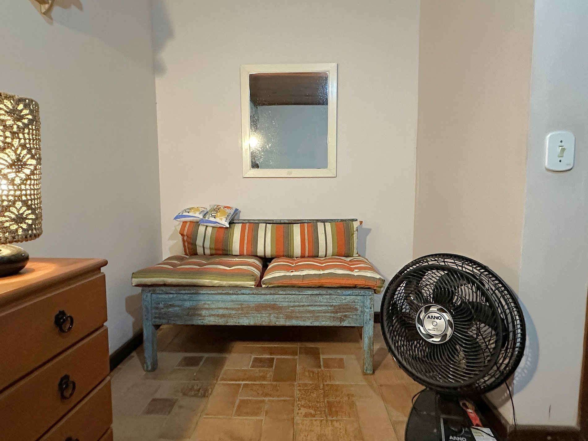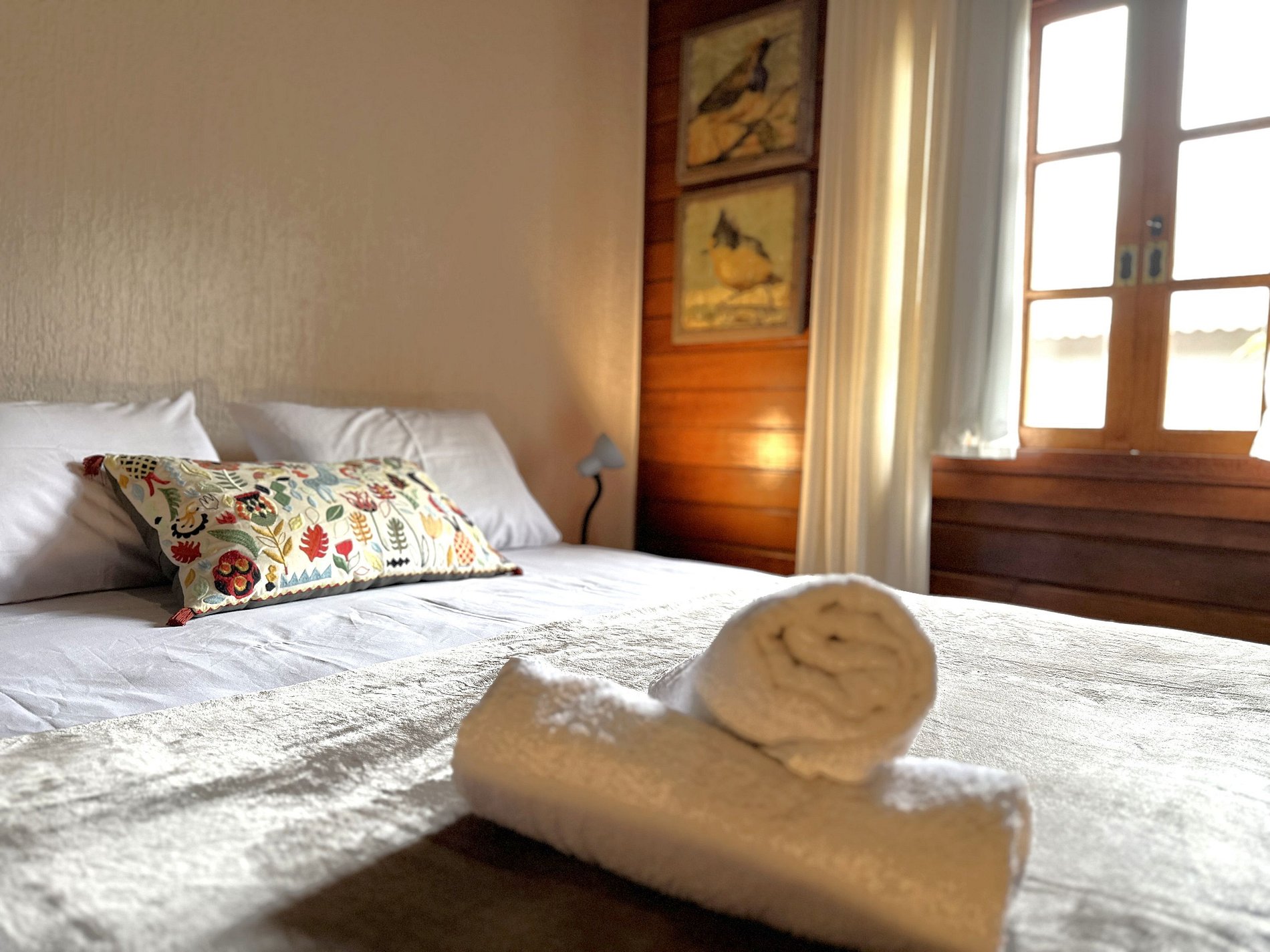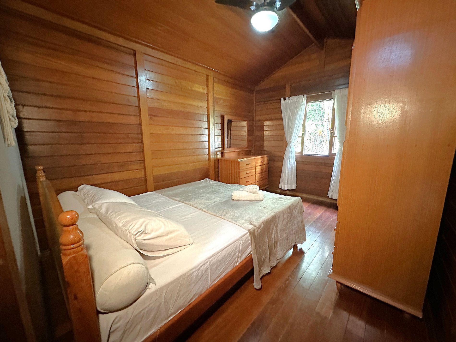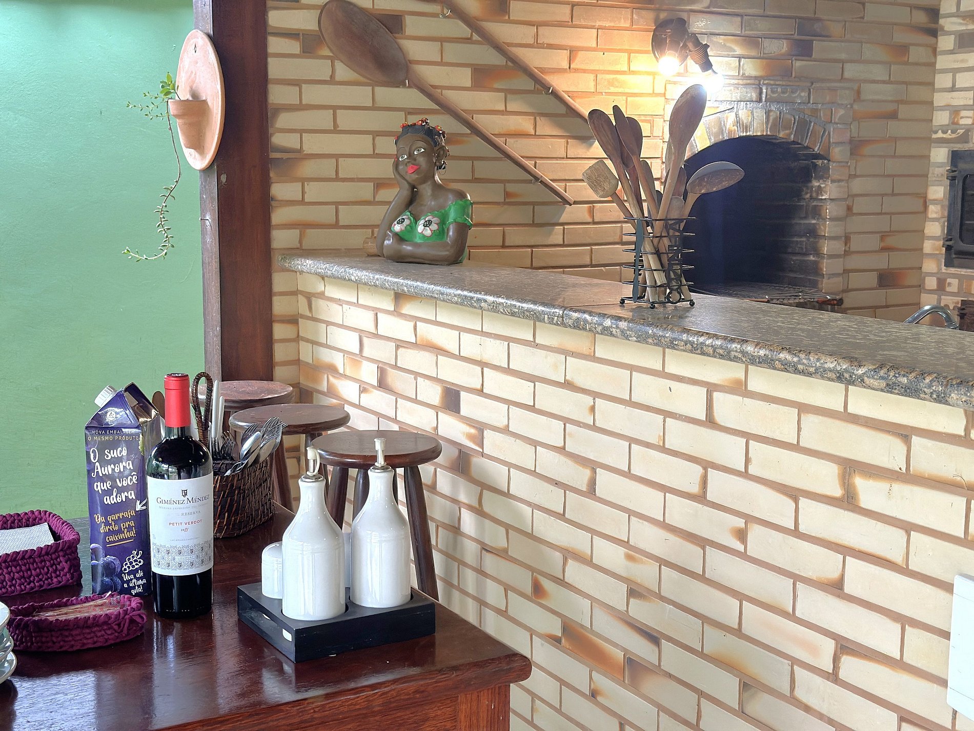 A casa possui 4 quartos, sendo 1 suíte, duas salas amplas, duas cozinhas e mais 2 banheiros. Todos os cômodos são decorados e equipados para comodidade dos hóspedes. Porém a grande atração está na área externa. Em um terreno de 1000m², temos um jardim maravilhoso com frutíferas e diversos locais para descansar, além de um chuveirão e uma área de churrasco ampla, com direito a fogão a lenha.