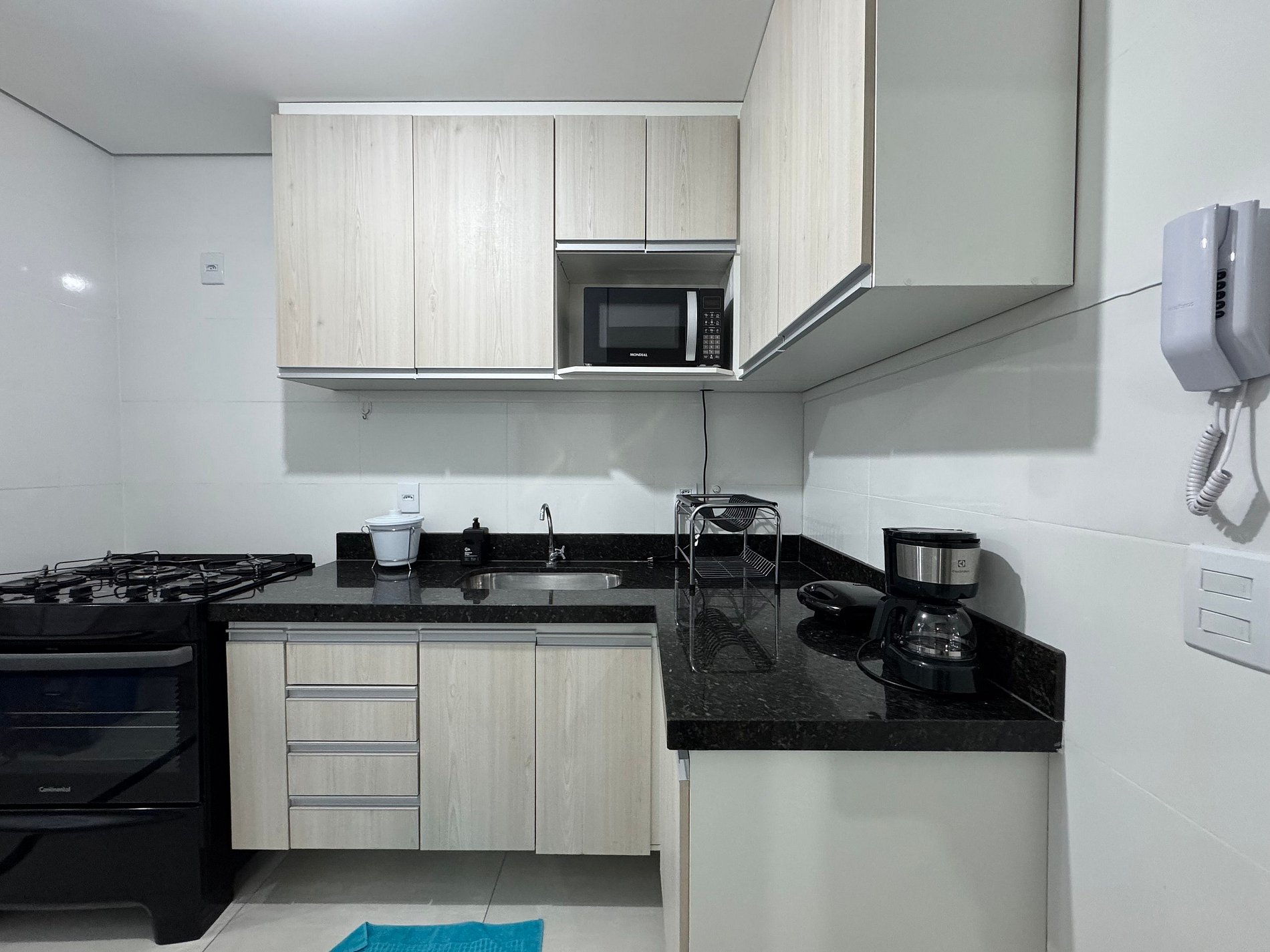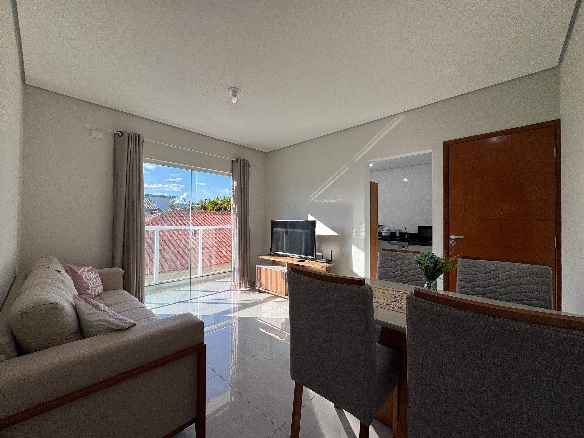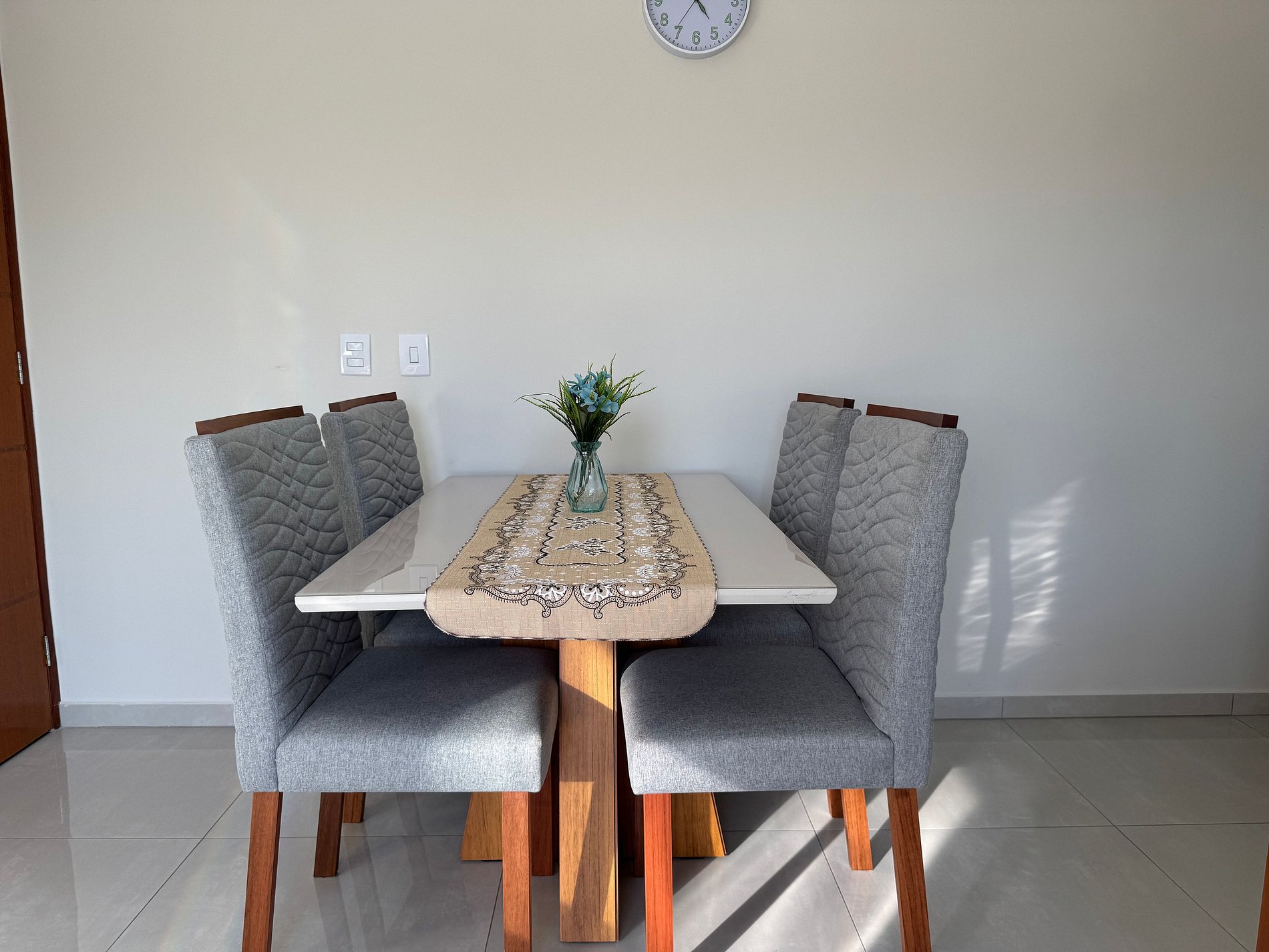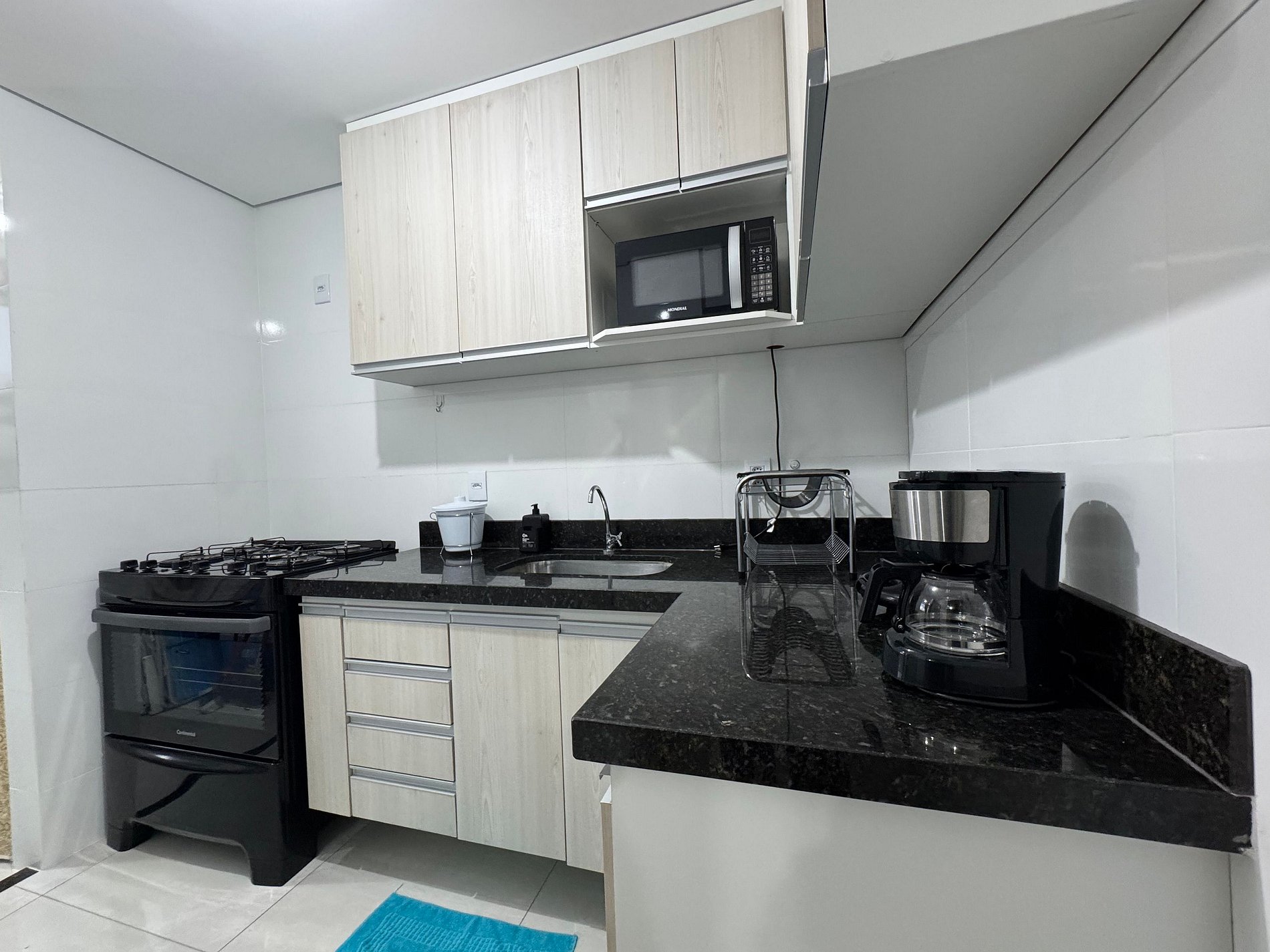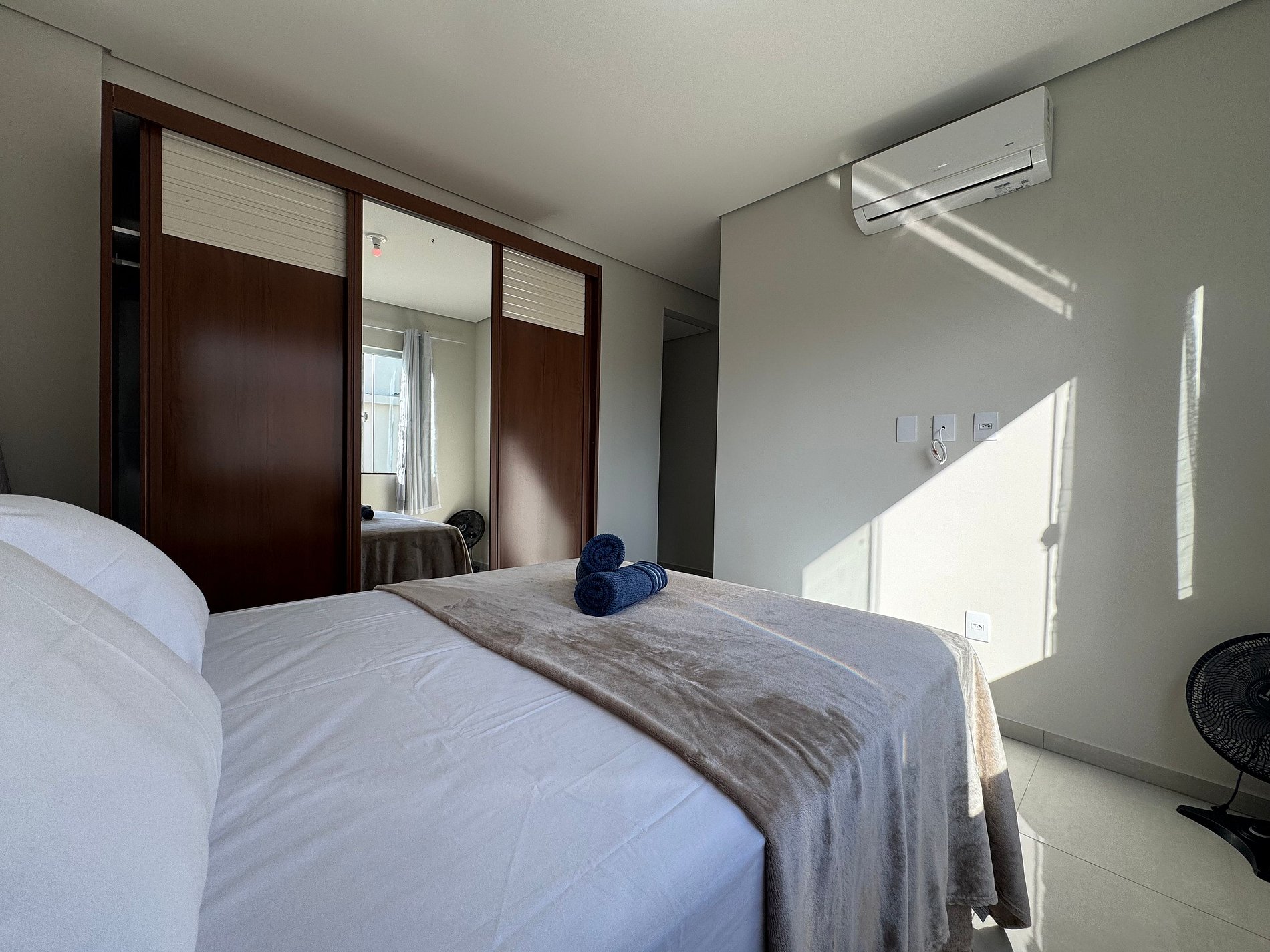 O apartamento possui 2 quartos com ar-condicionado e 1 com ventilador portátil, sendo uma suíte, 1 banheiro, sala aconchegante com TV smart e mesa para jantar. Cozinha completa com todos os tipos de utensílios e panelas. Área de serviço com máquina de lavar. Varanda incrível com espaço para curtir o local.