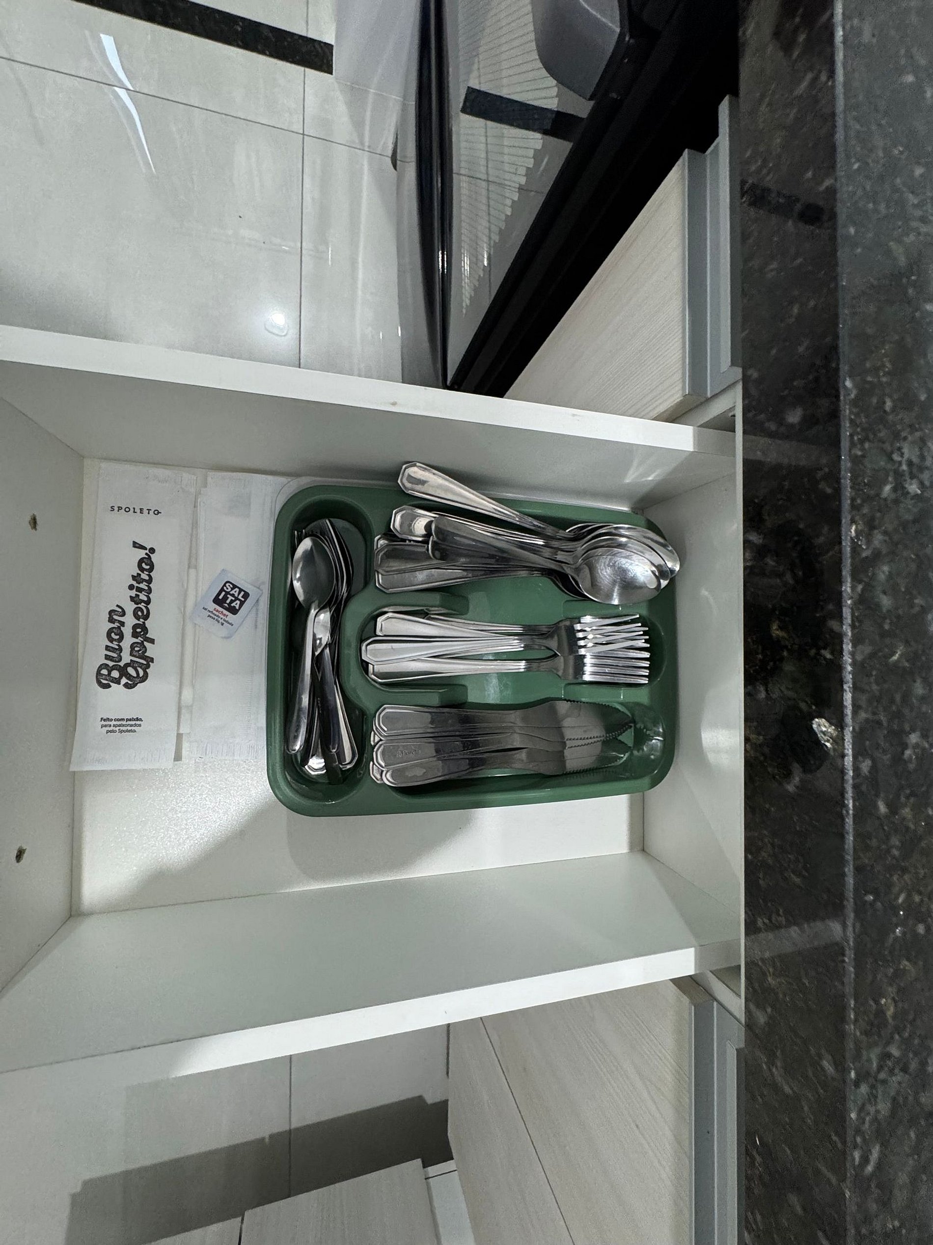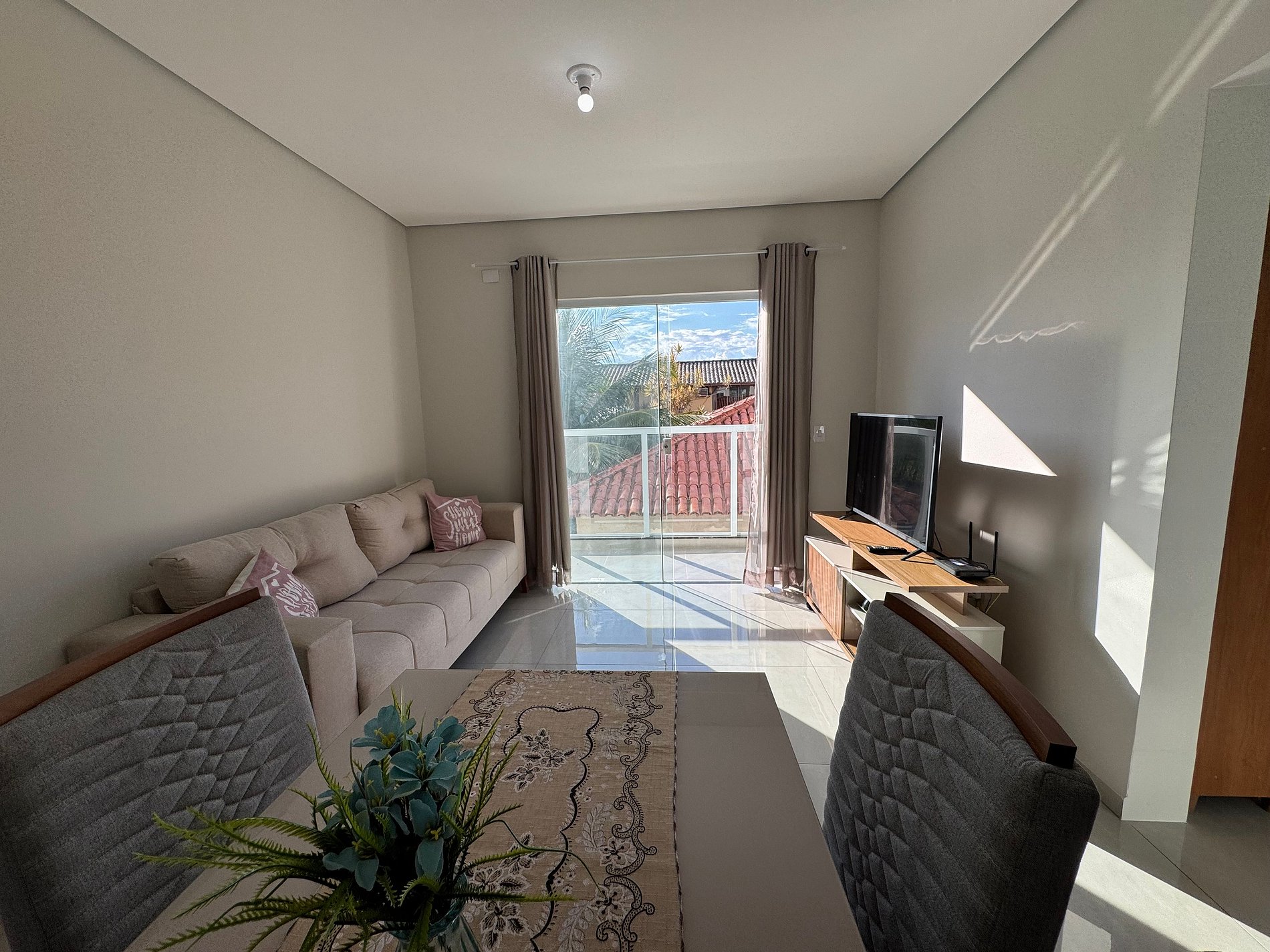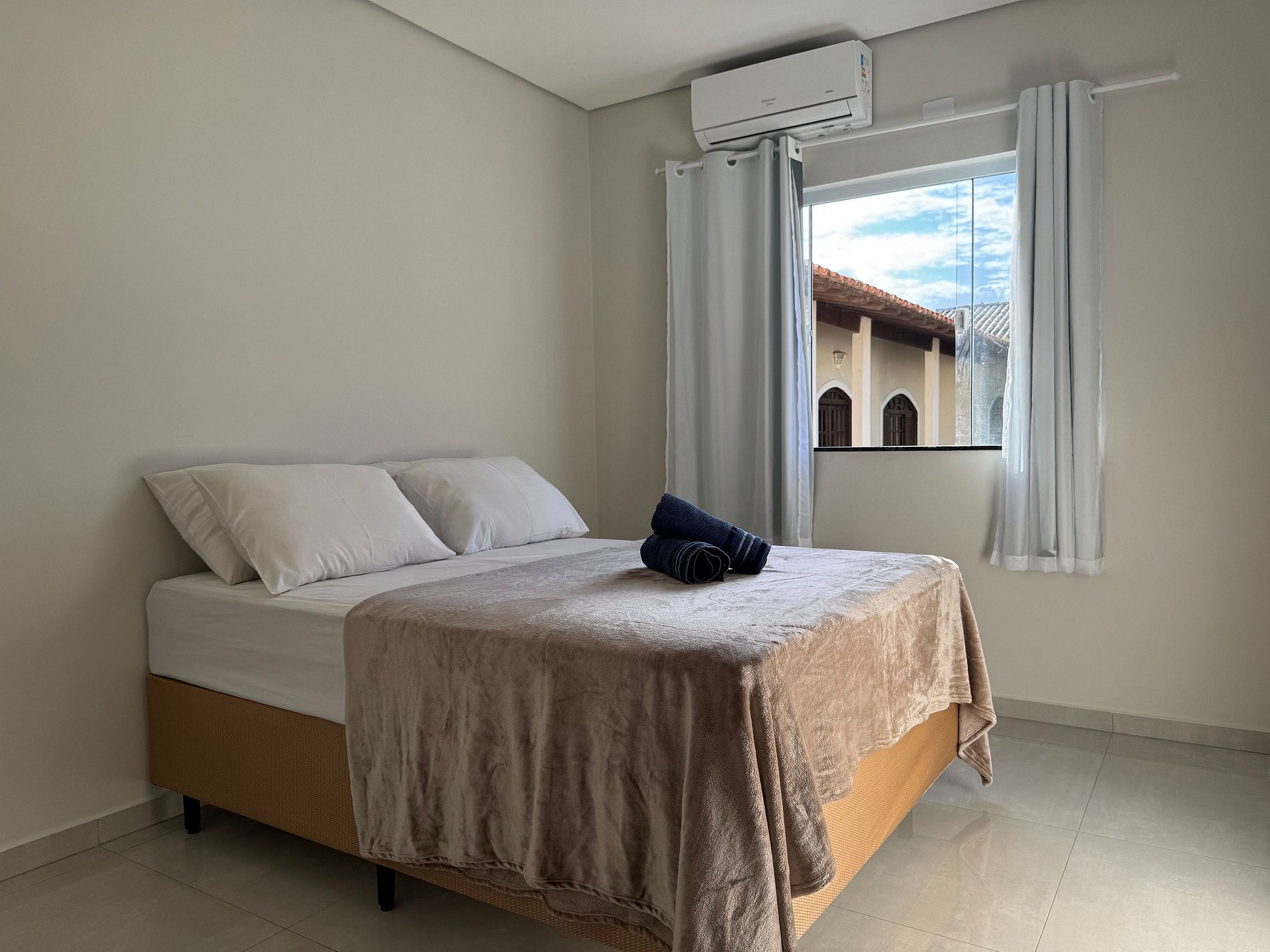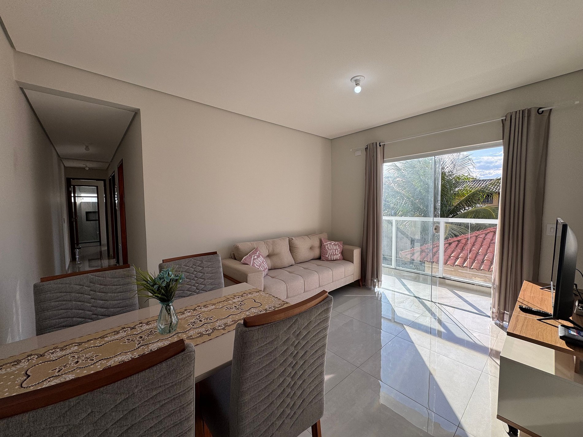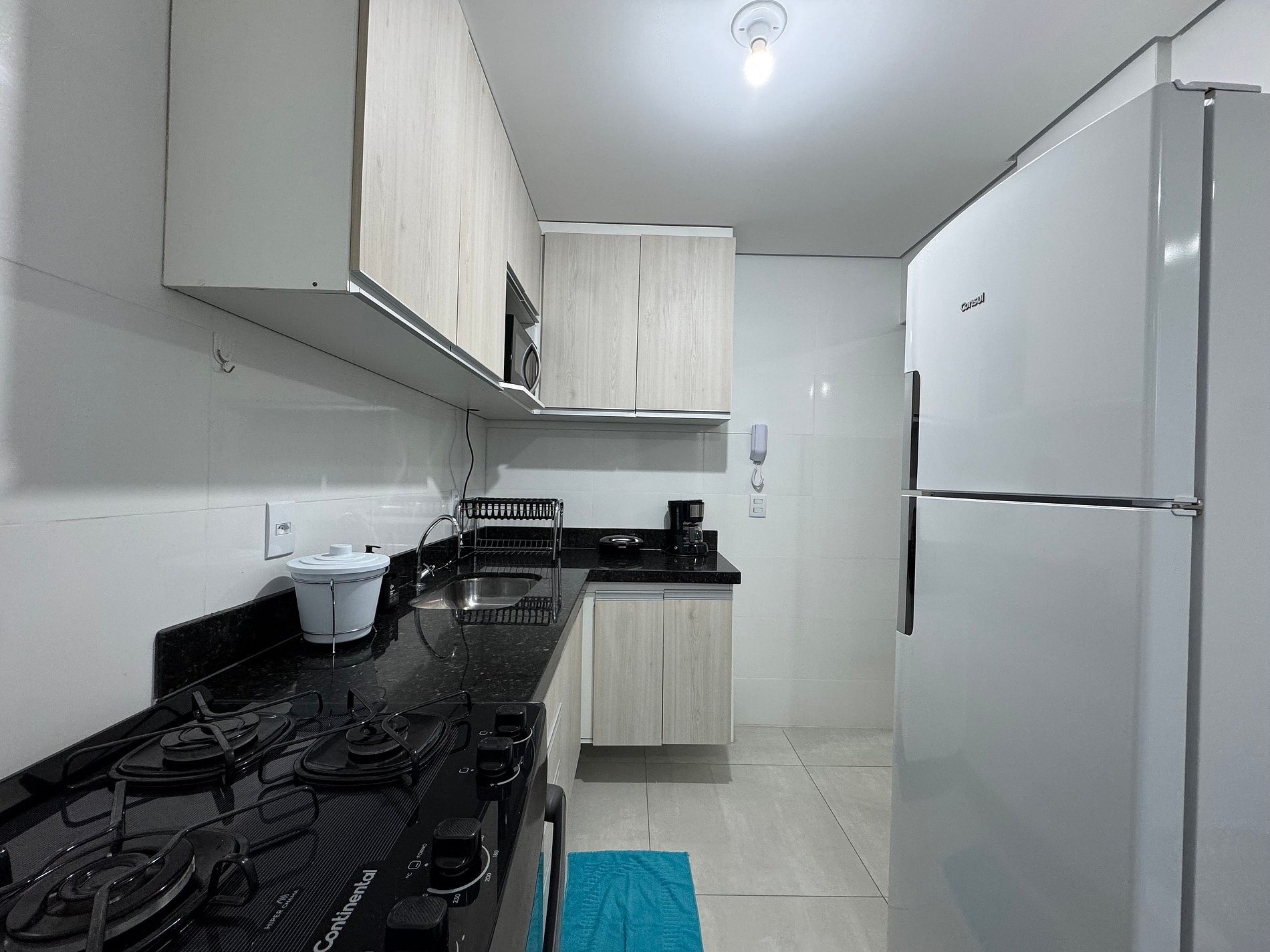 O apartamento possui 2 quartos com ar-condicionado e 1 com ventilador portátil, sendo uma suíte, 1 banheiro, sala aconchegante com TV smart e mesa para jantar. Cozinha completa com todos os tipos de utensílios e panelas. Área de serviço com máquina de lavar. Varanda incrível com espaço para curtir o local.