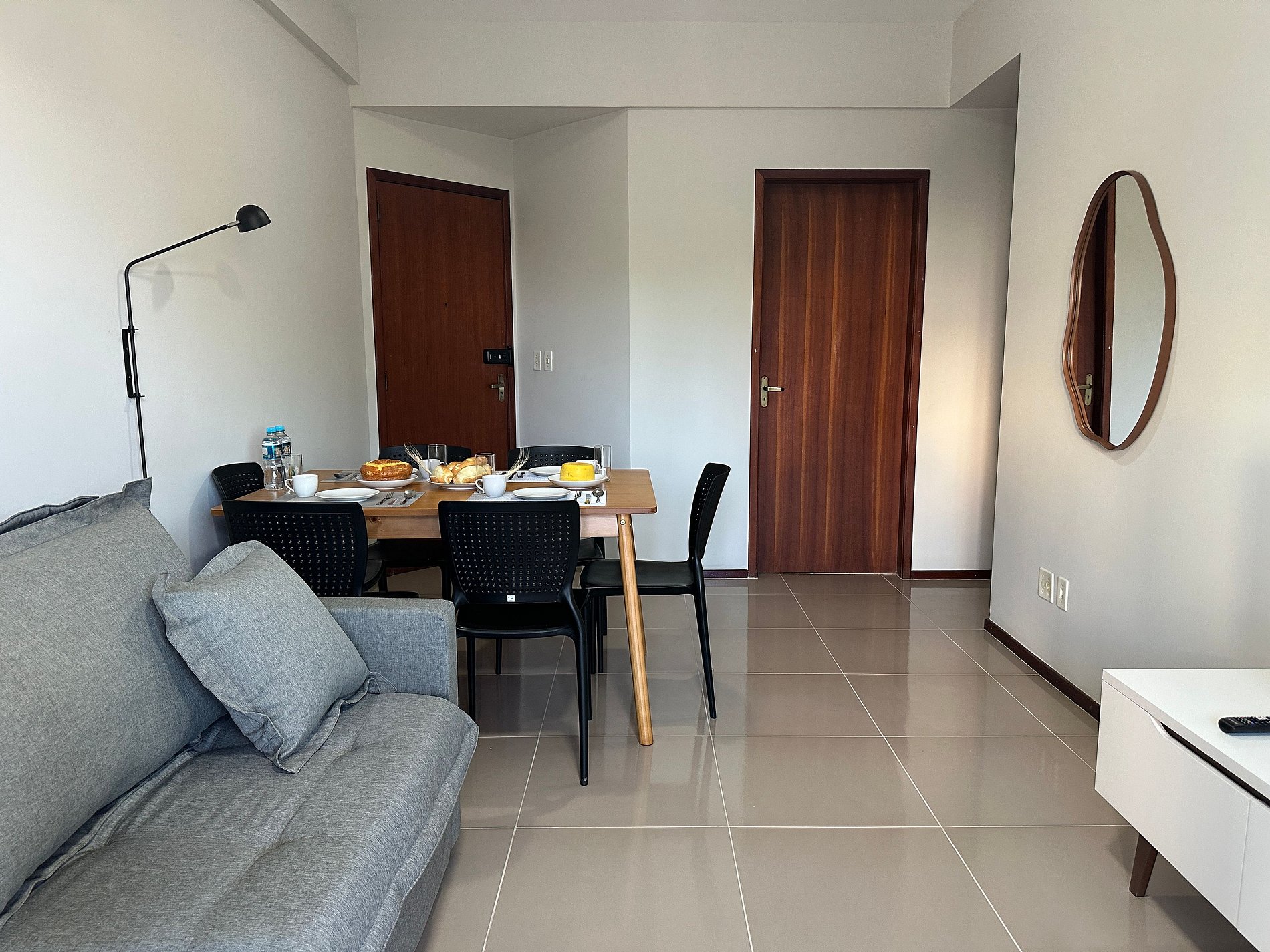 O apartamento possui 2 quartos com ar condicionado, sendo uma suíte, 2 banheiros, sala aconchegante com TV smart e mesa para jantar. Cozinha completa com todos os tipos de utensílios e panelas. Área de serviço com máquina de lavar.