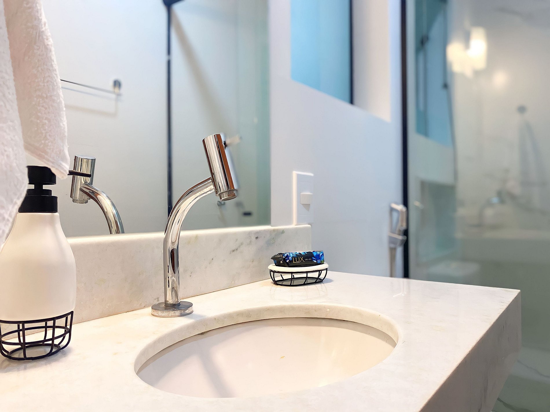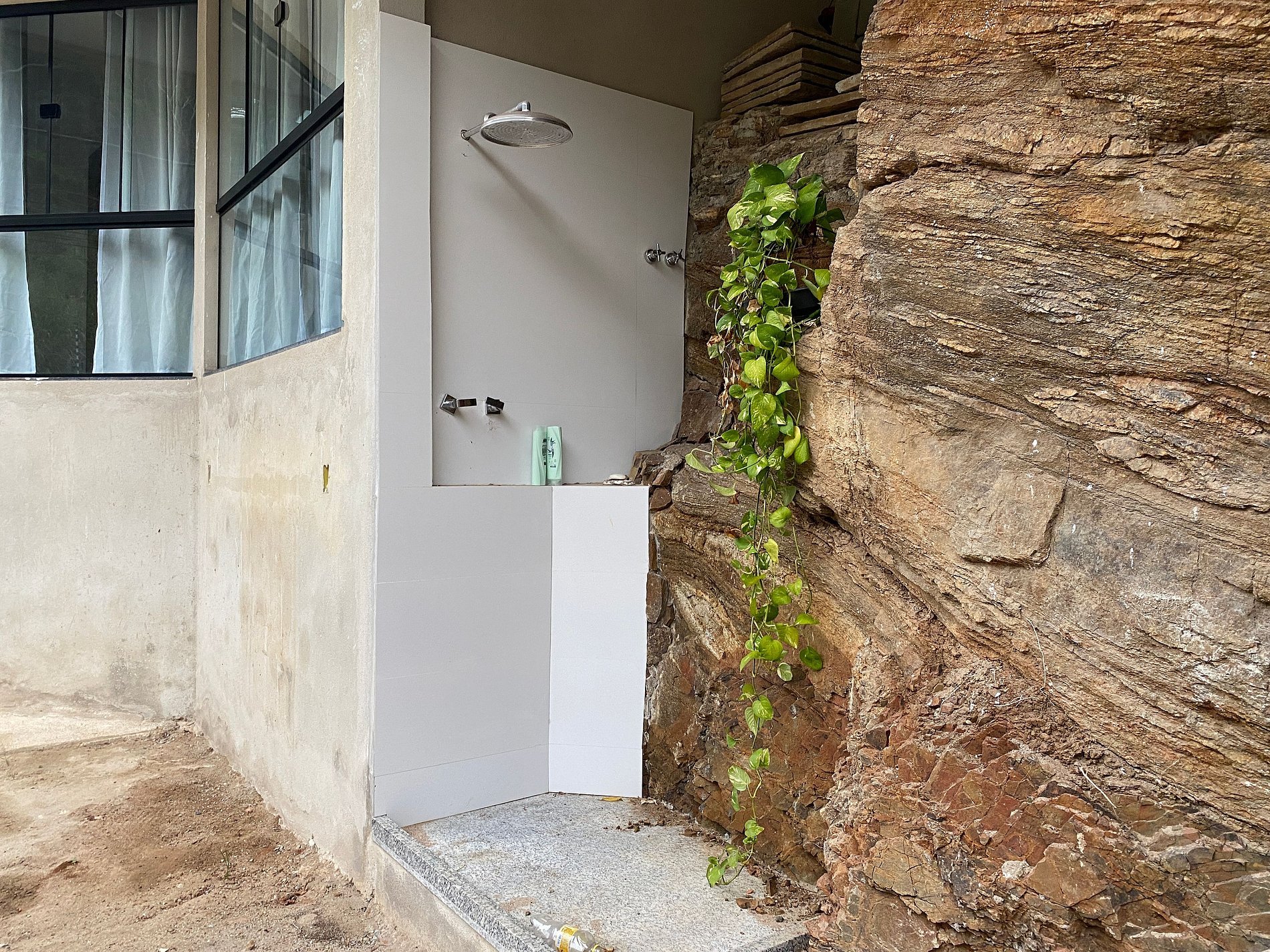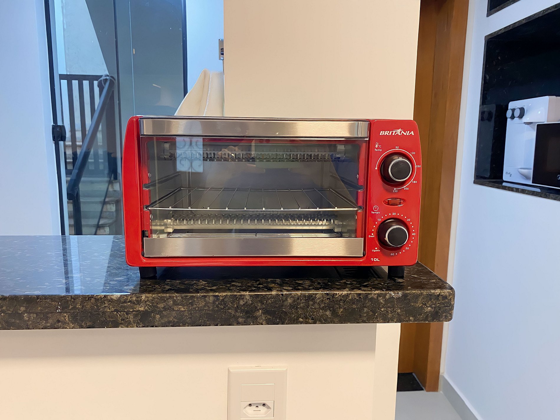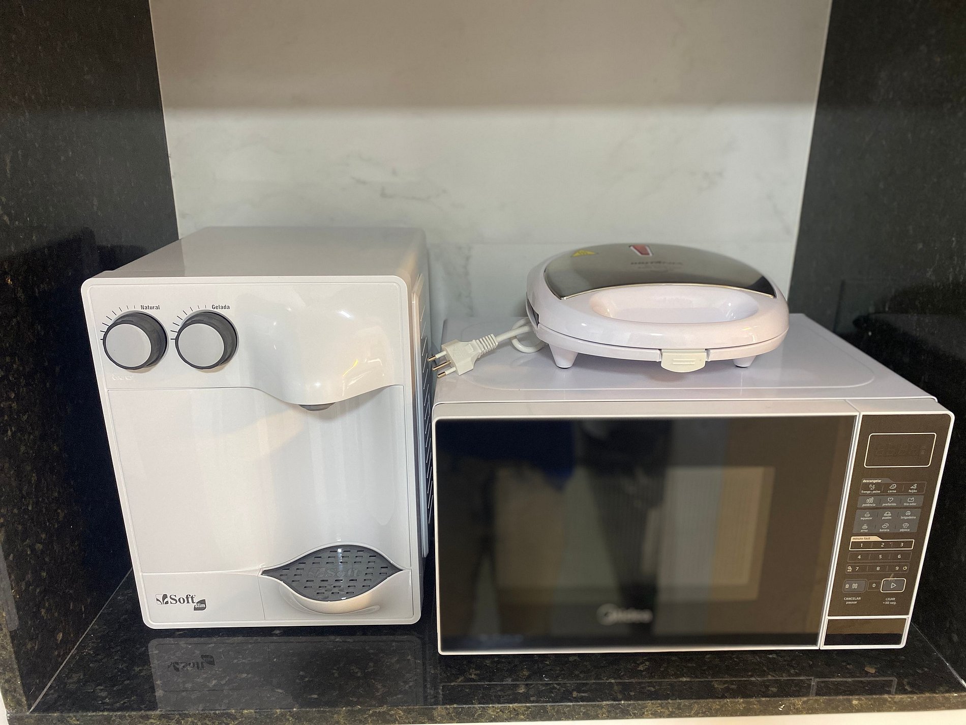 O loft é amplo e completo. Você encontrará um ambiente pensado para temporada, com sala, quarto, cozinha e banheiro, área de serviço e garagem. A cozinha é simples e completa, com tudo que você possa precisar na sua estadia. O quarto possui uma cama de casal confortável e armário, além de ar-condicionado. Na sala há um espaço em que é possível colocar um colchonete. Os ambientes não possuem divisão por portas, apenas no banheiro. Há um chuveirão na garagem.