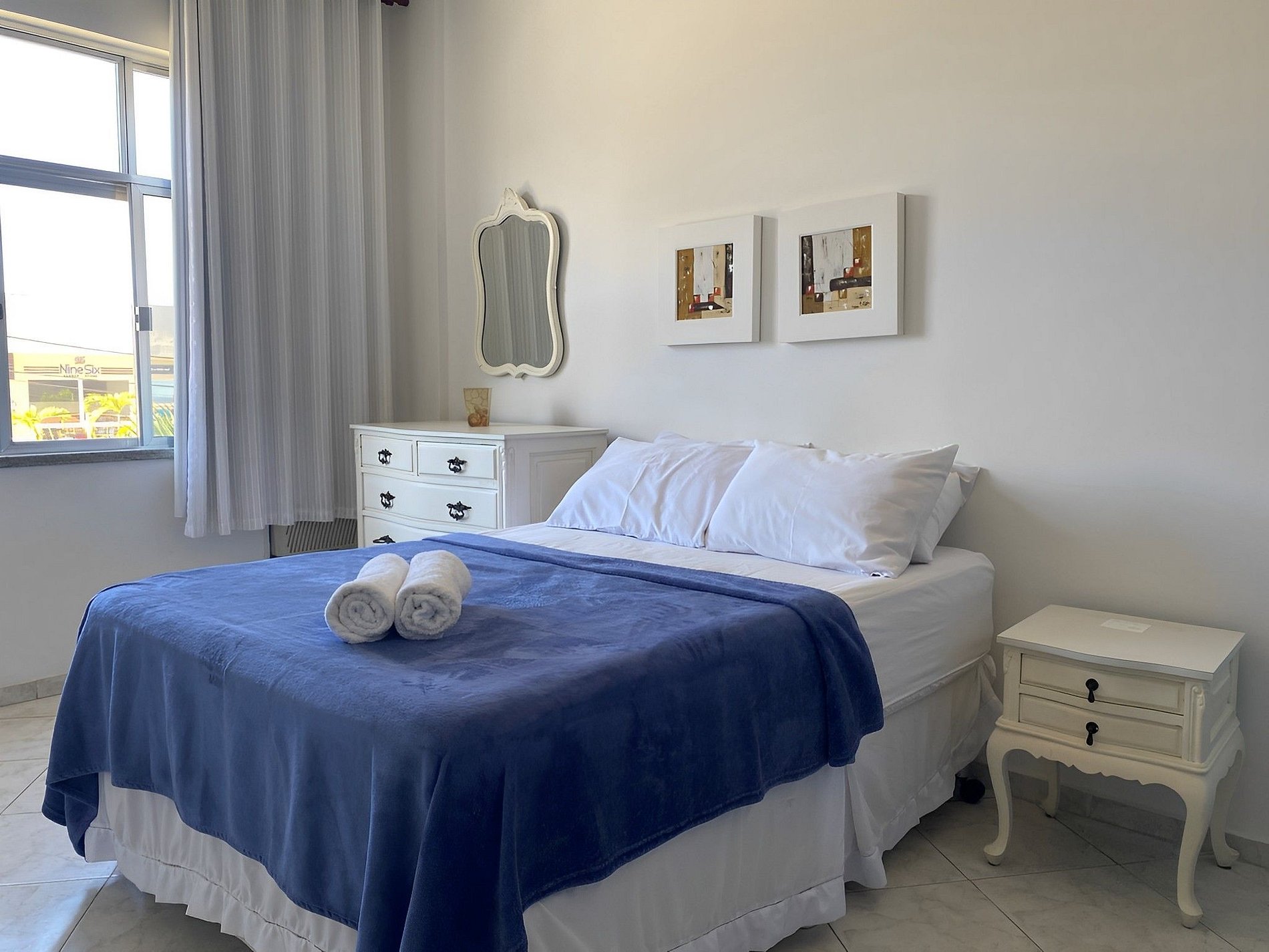 O apartamento fica localizado no centro, próximo a todos os tipos de comércio e restaurantes.