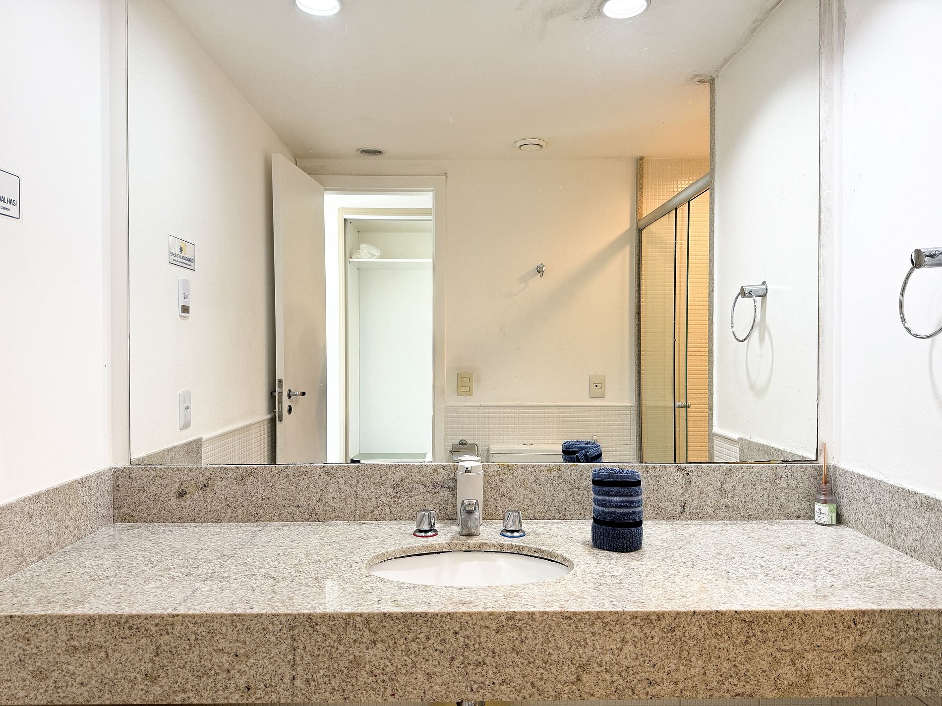 Lindo apartamento de alto padrão. Espaço confortável para trabalhar e descansar em um dos melhores lofts da cidade e uma vista deslumbrante do mar. O hóspede terá acesso a todos os serviços oferecidos pelo condomínio, como piscina, sauna, academia e camareira. O café-da-manhã e lavanderia são terceirizados e cobrados a parte pelo condomínio. O ar-condicionado é central e atende todo o apartamento.